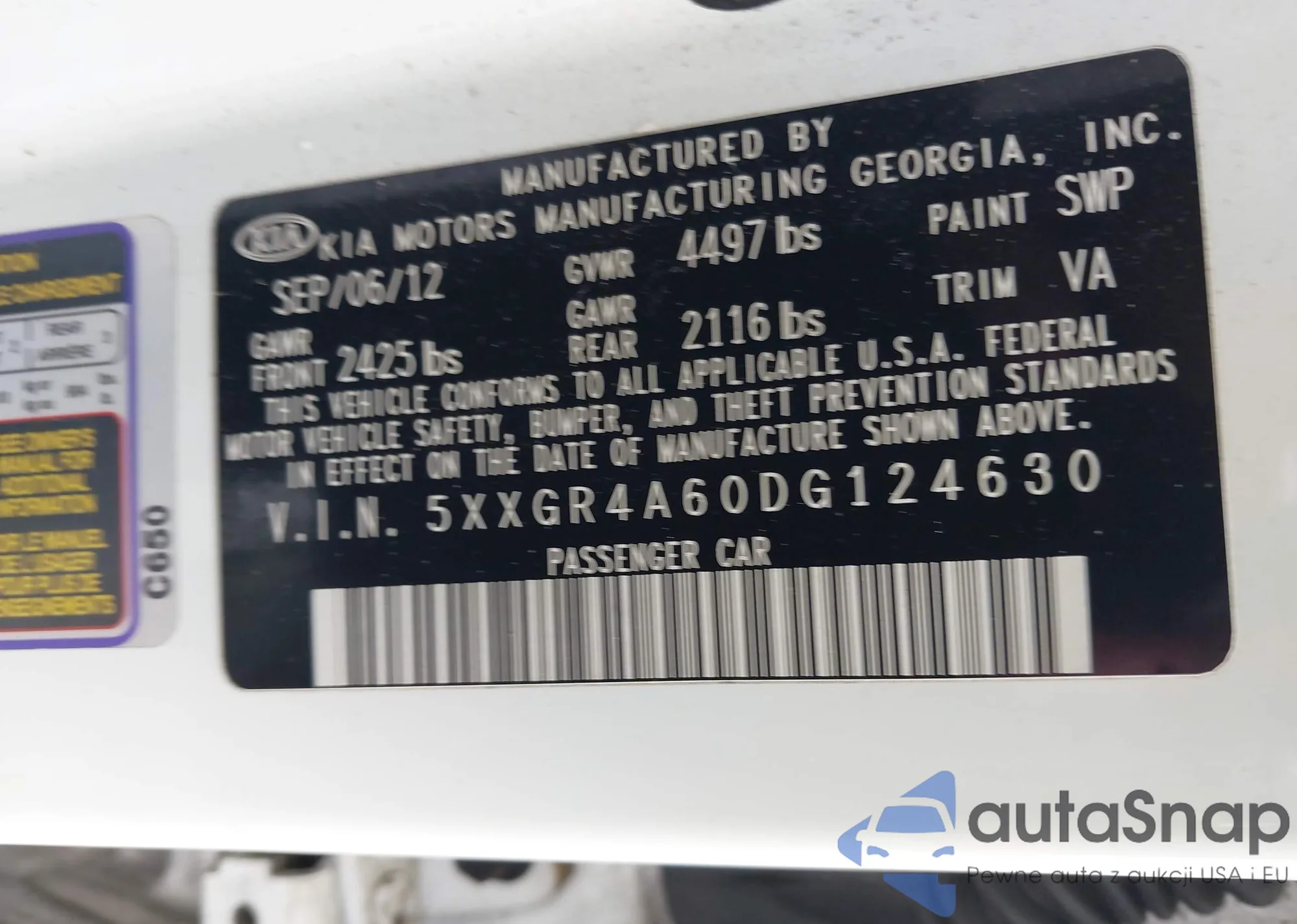 LOT: 42219961 VIN: 5XYKT3A62CG268017