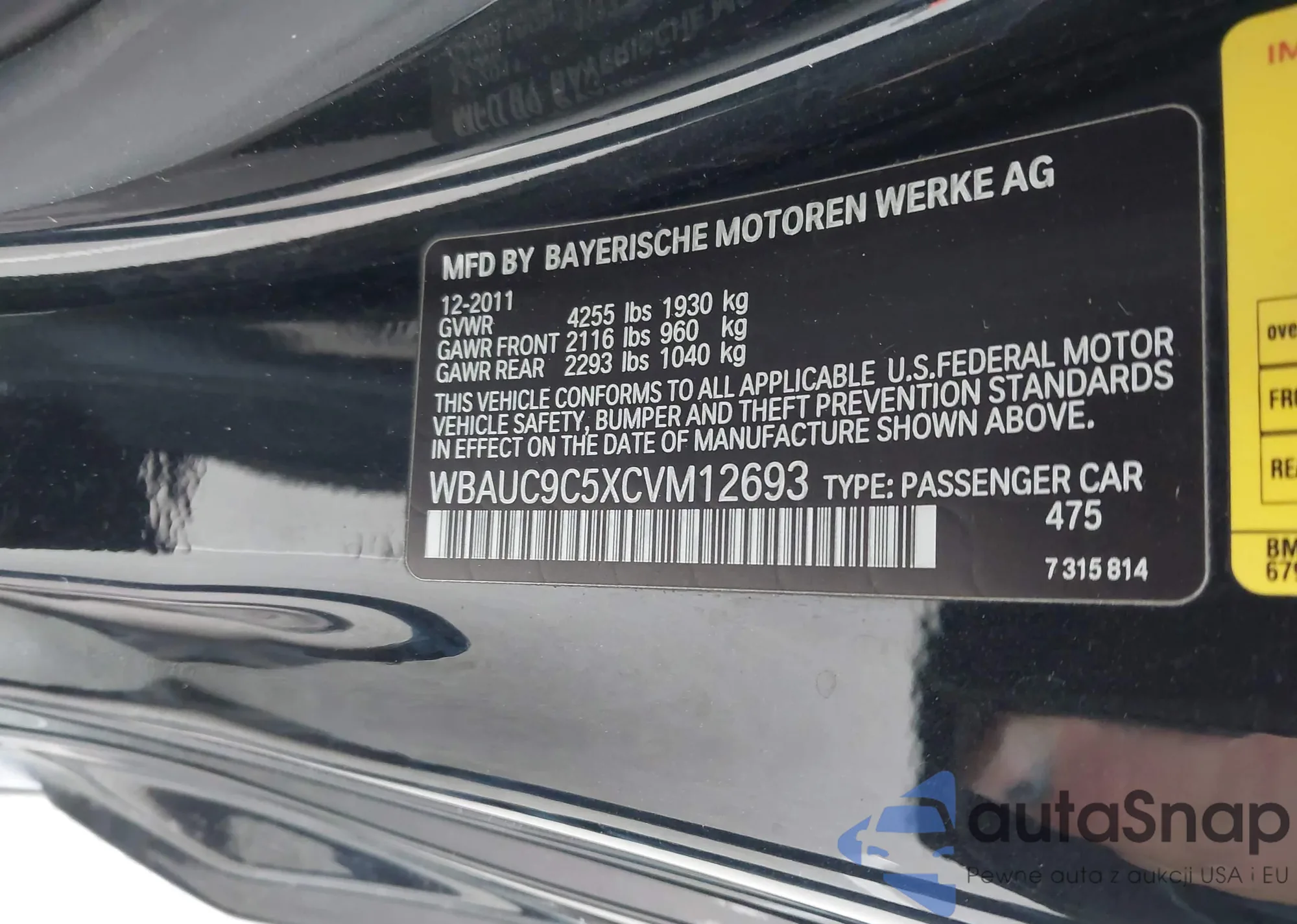 • VIN WBAUC9C5XCVM12693