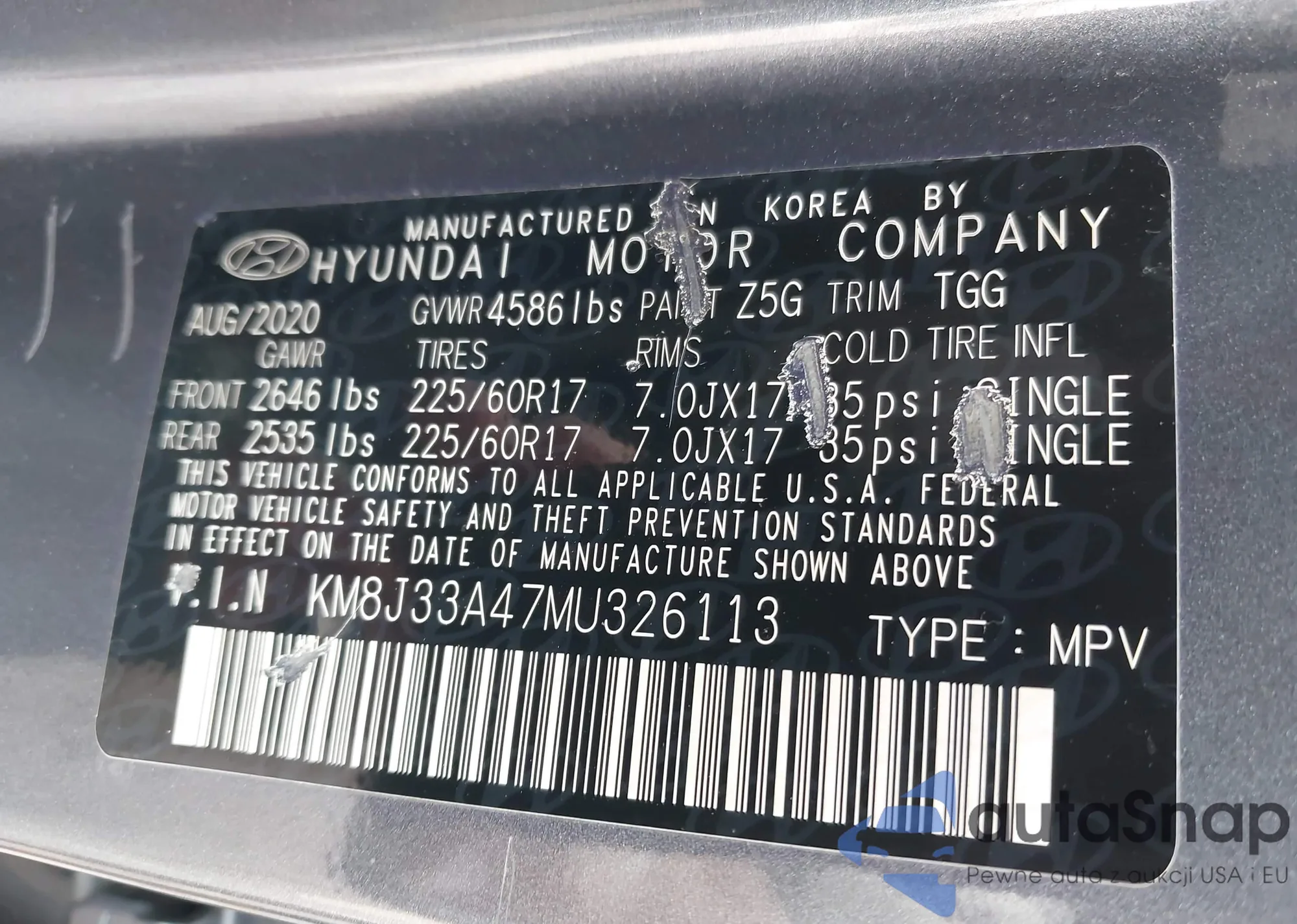 • VIN KM8J33A47MU326113