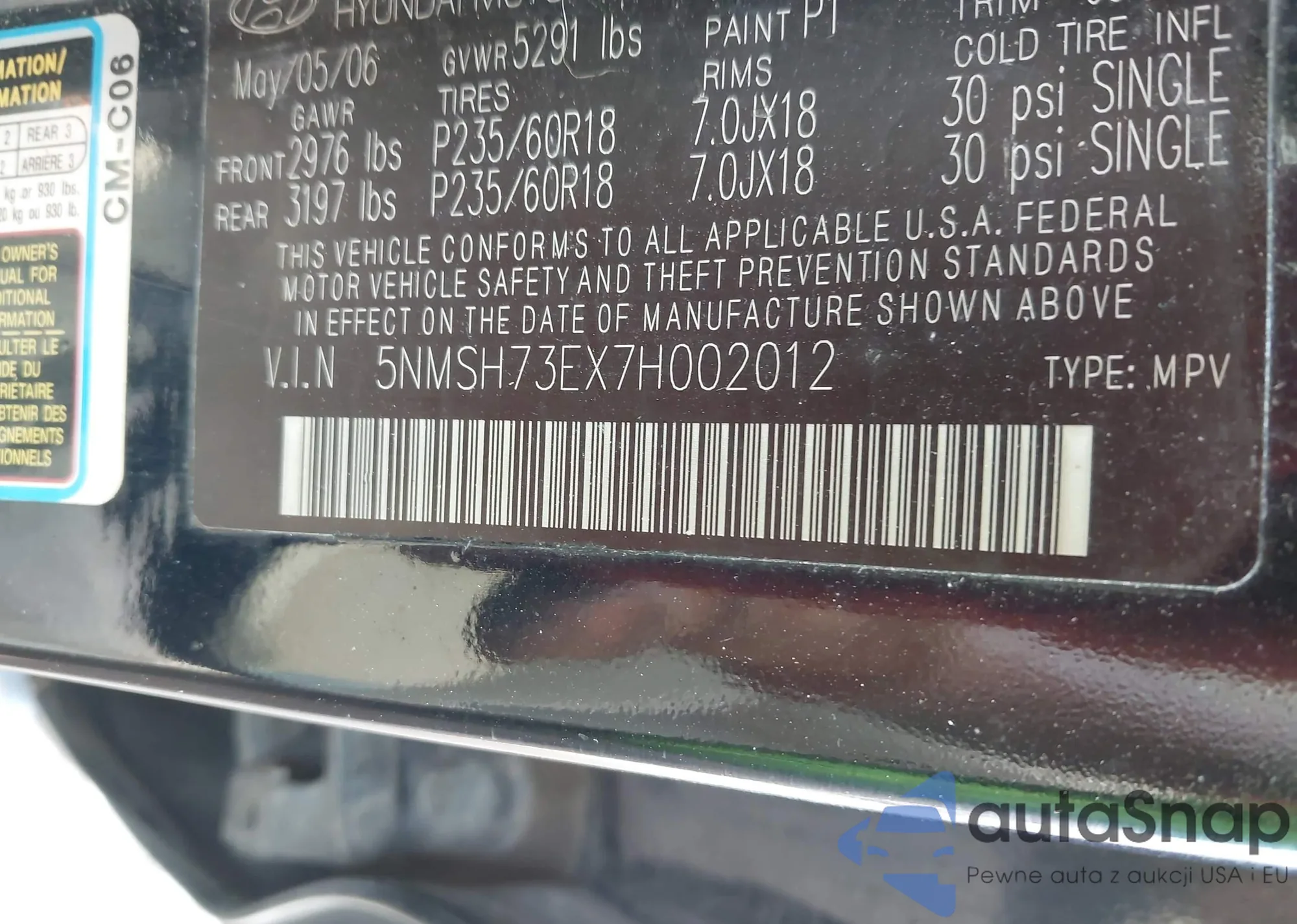 • VIN KM8SM4HF7HU179649