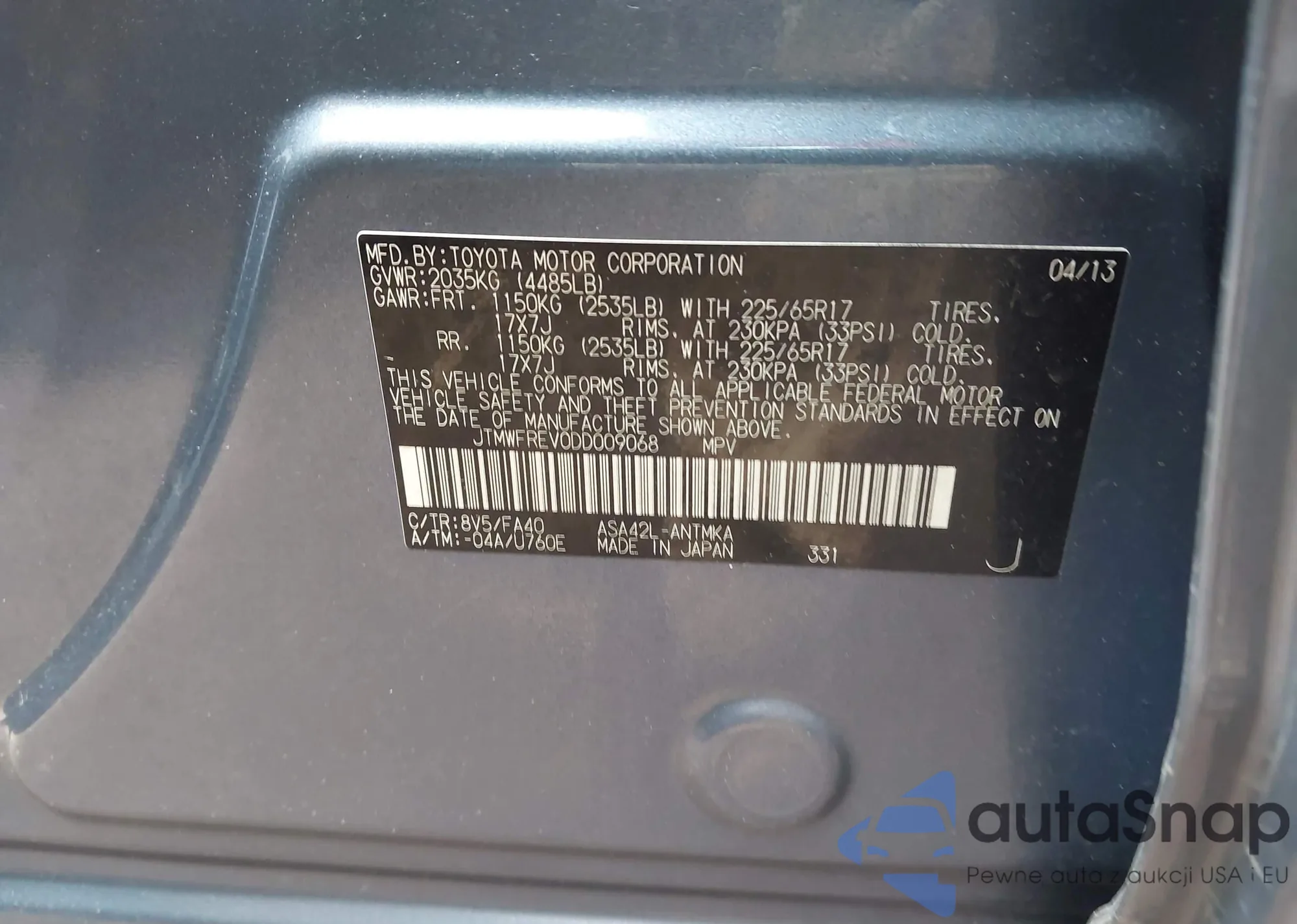 LOT: 42318008 VIN: KMHDH6AEXDU002579