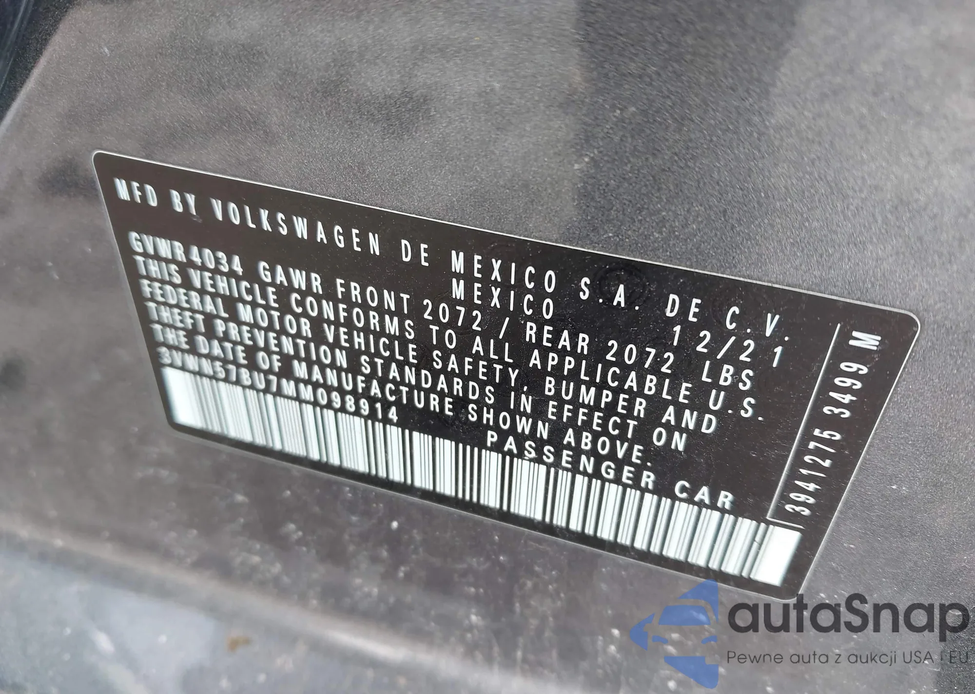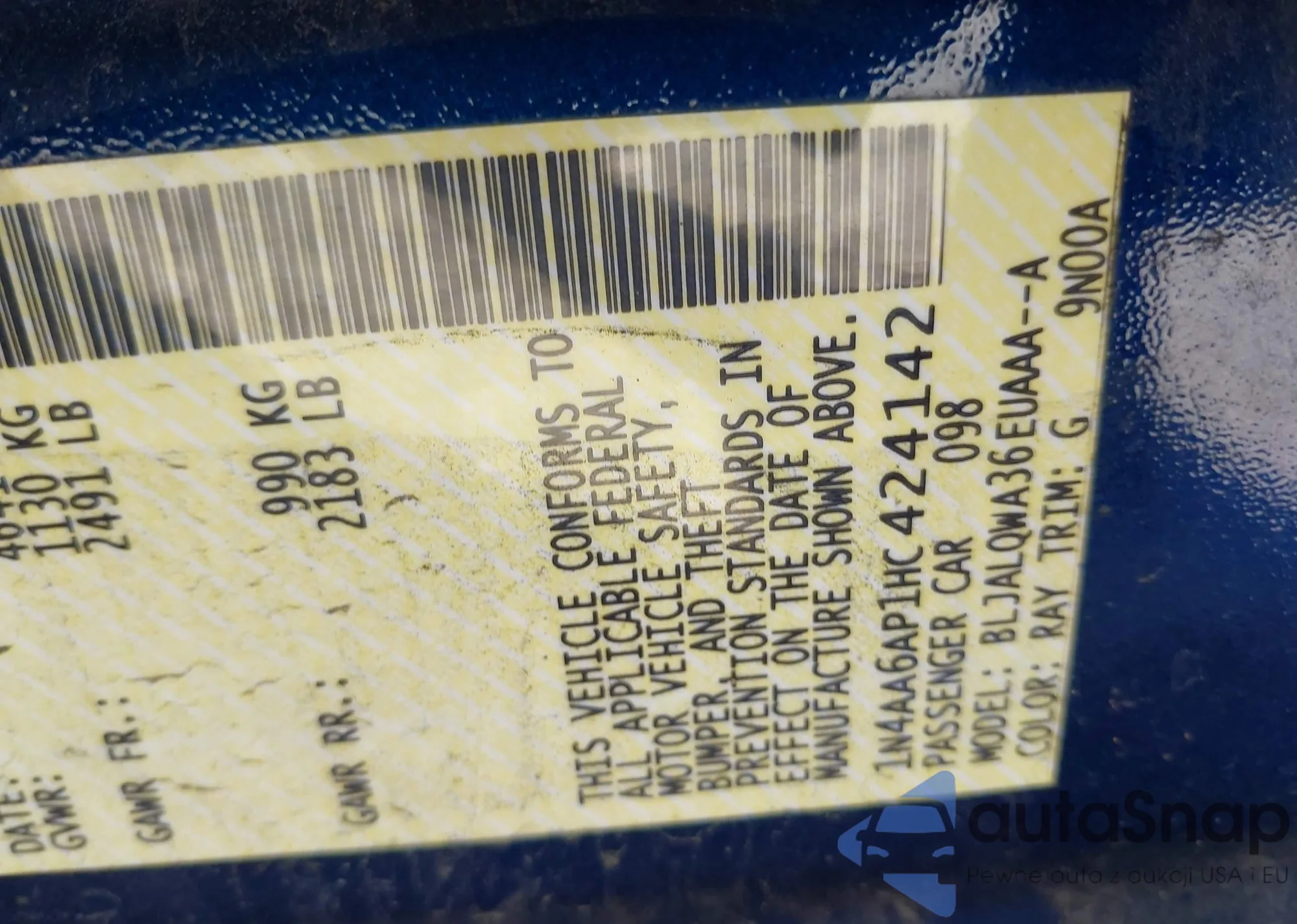 LOT: 41748074 VIN: JN1BJ1AW3NW476474