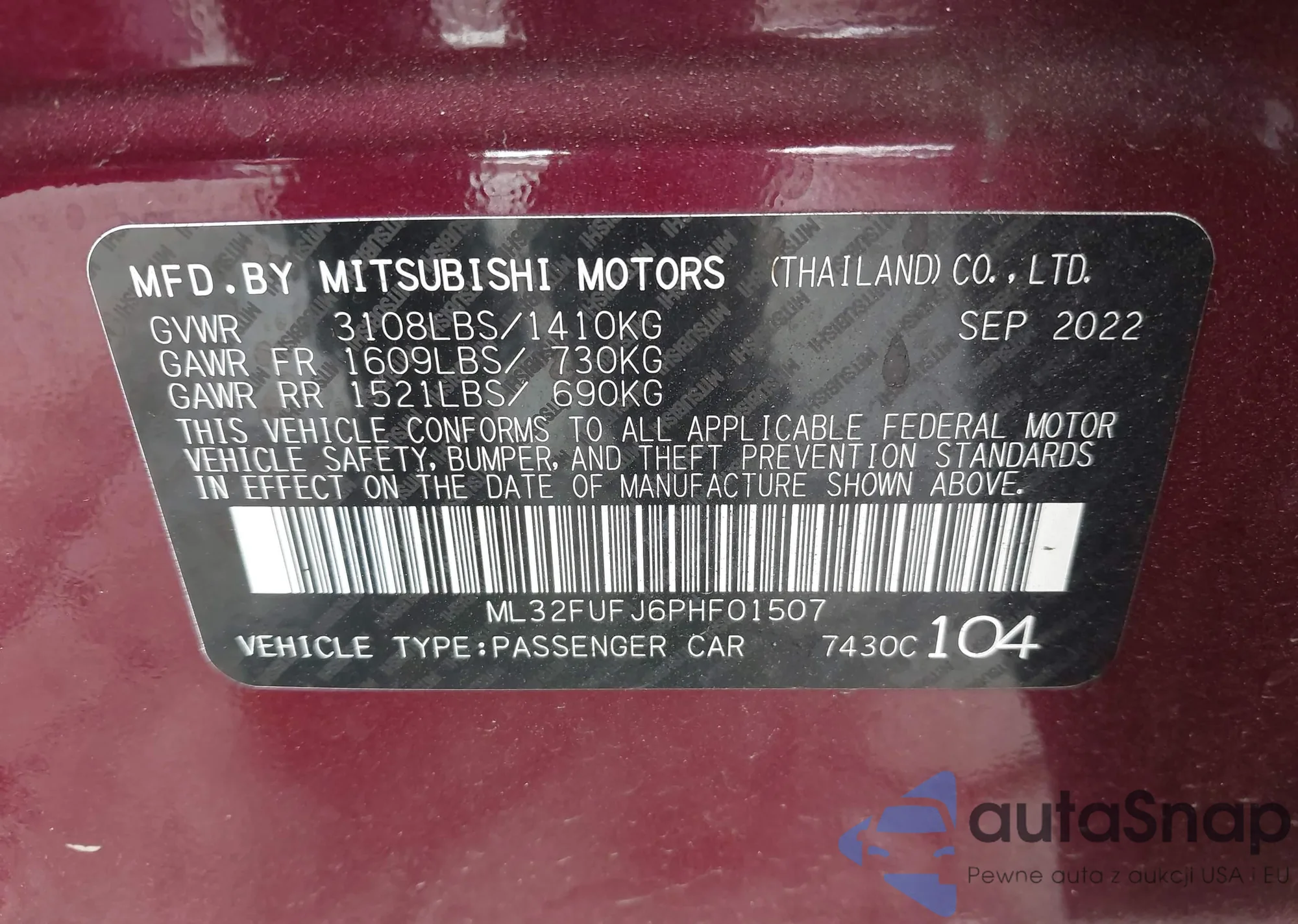 LOT: 41723827 VIN: ML32FUFJ6PHF01507