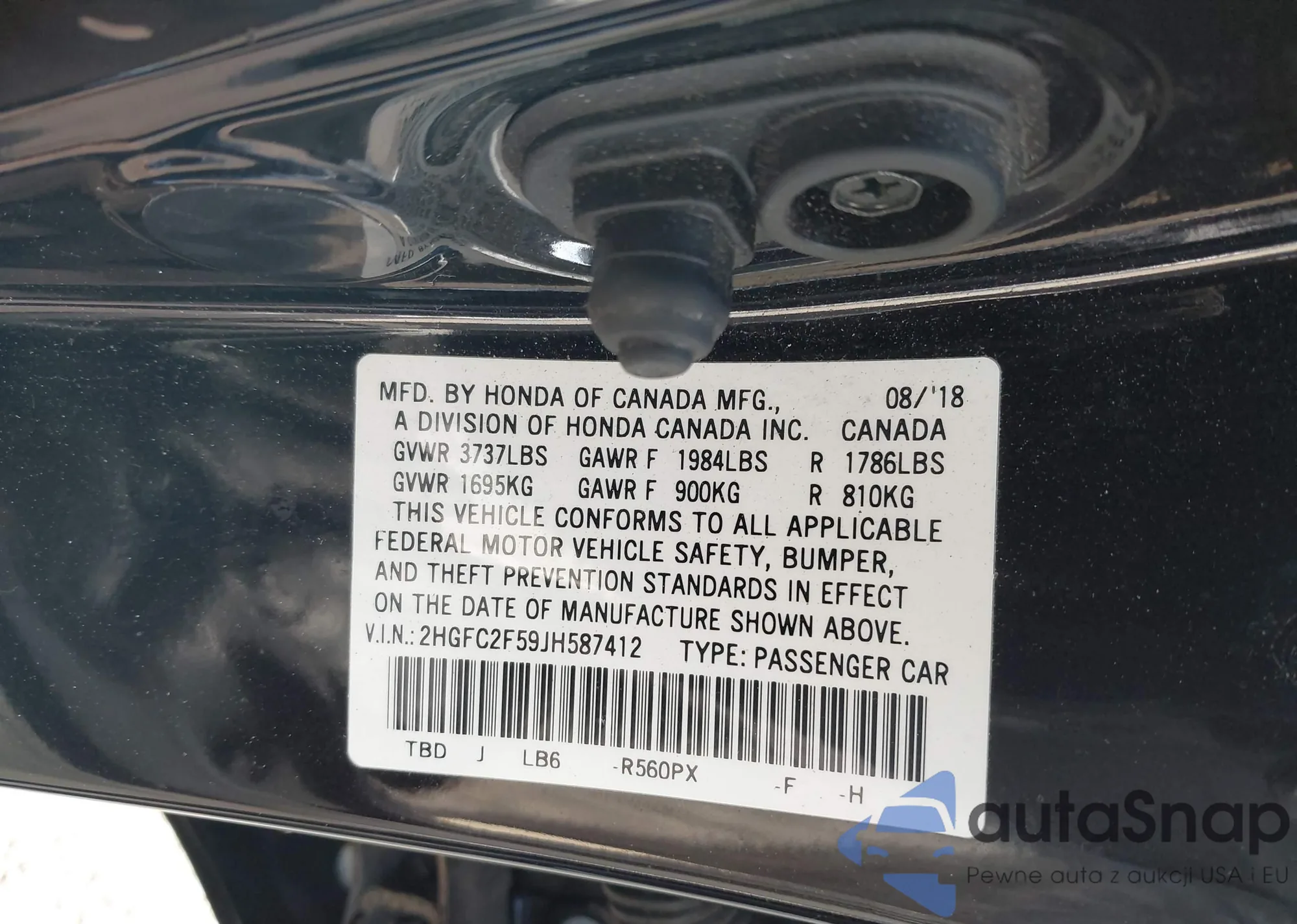 • VIN 2HGFC2F59JH587412