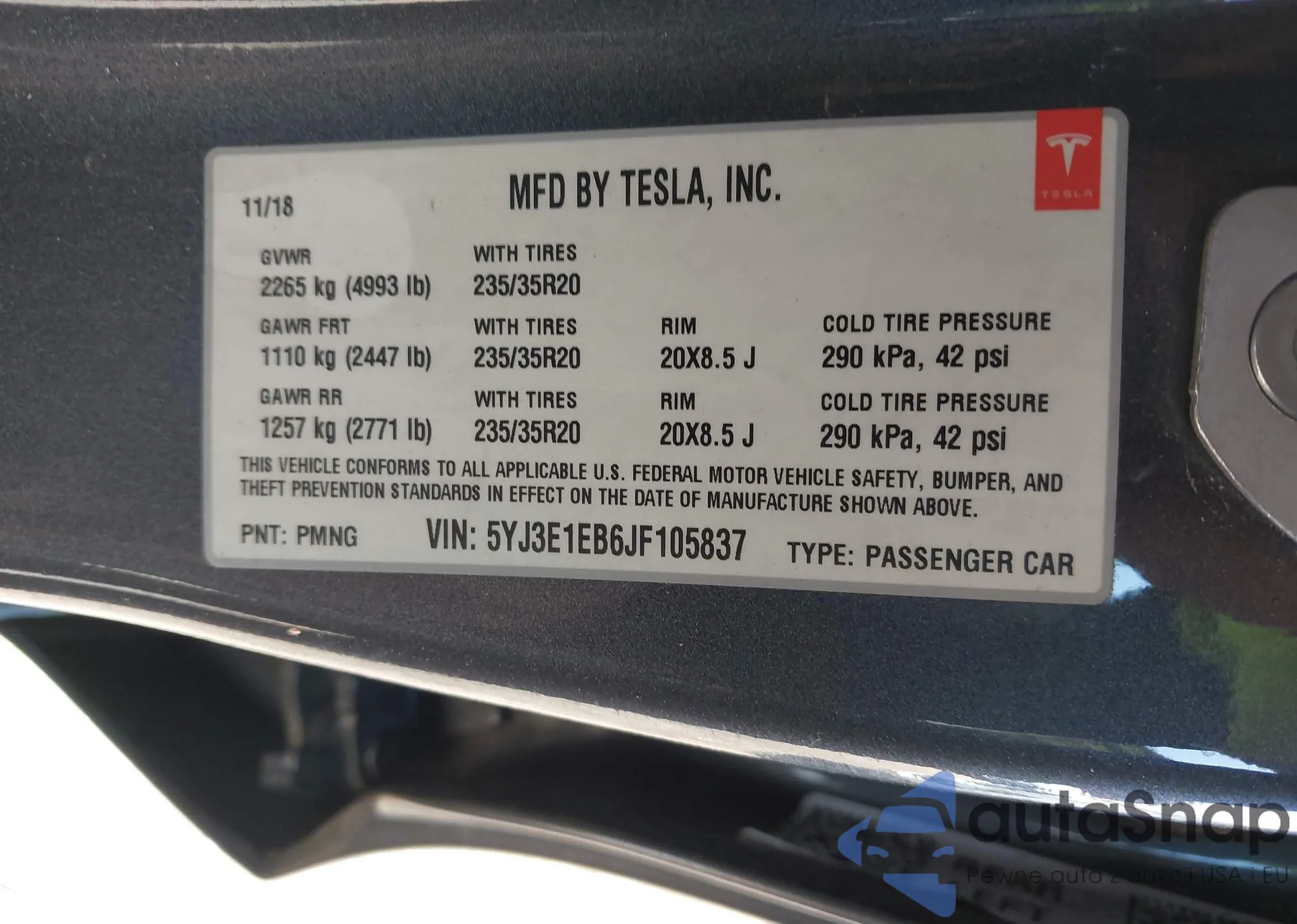• VIN 5YJ3E1EB6JF105837