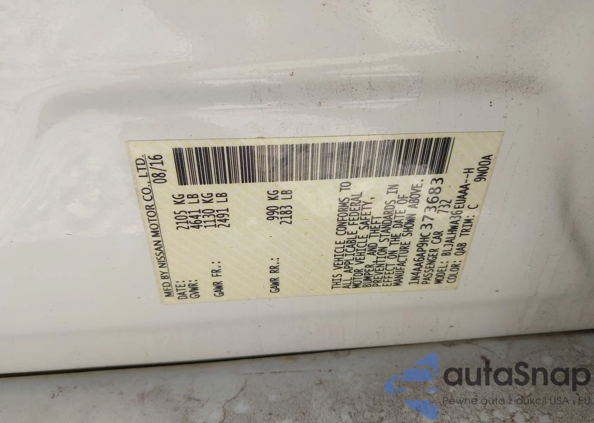 • VIN 1N4AA6AP9HC373683
