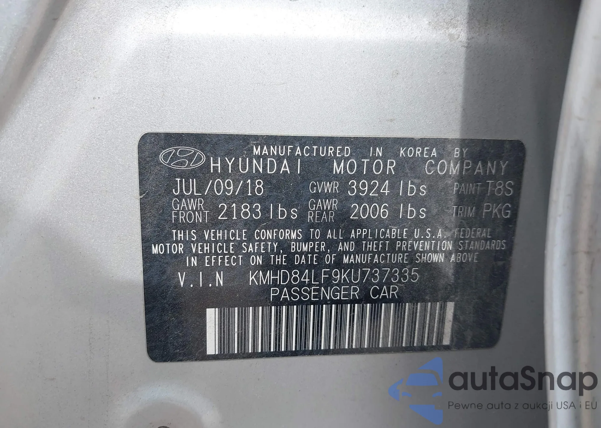 LOT: 41905473 VIN: KMHD84LF9KU737335