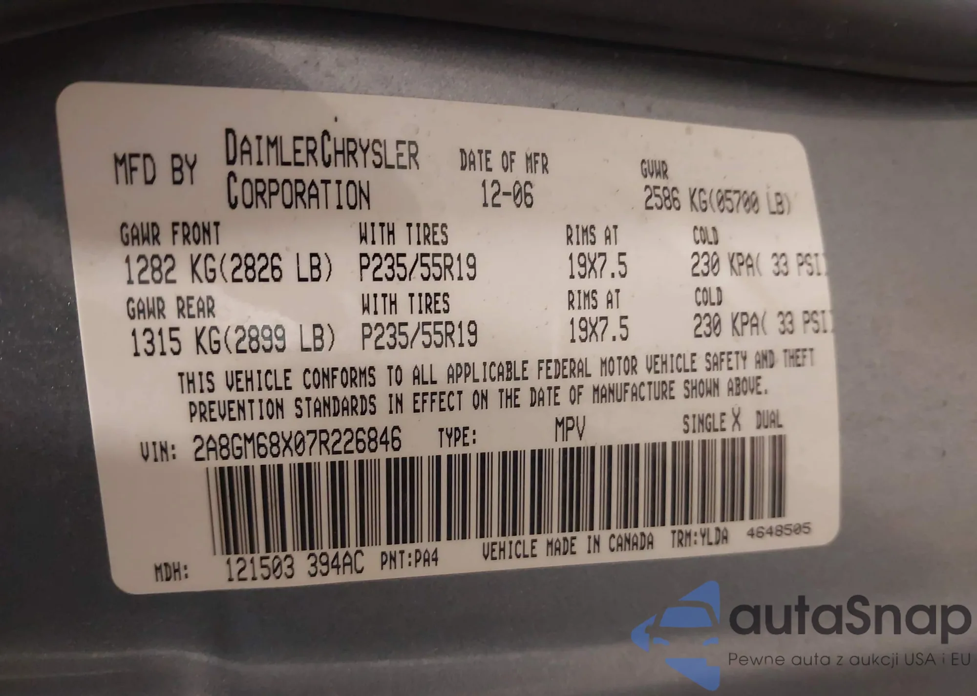 LOT: 42349821 VIN: 5TDZA23C74S176584