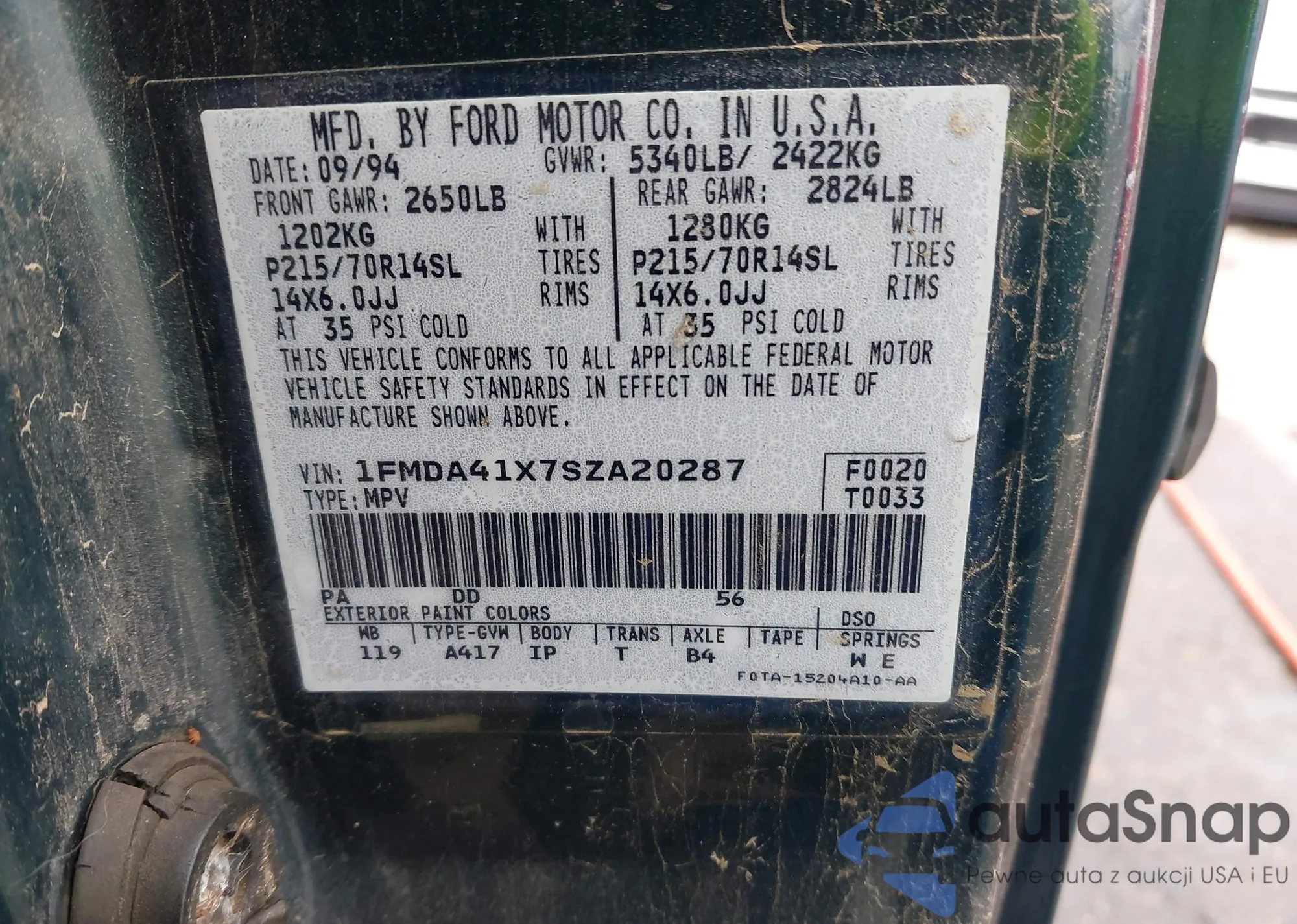 • VIN 1FMDA41X7SZA20287
