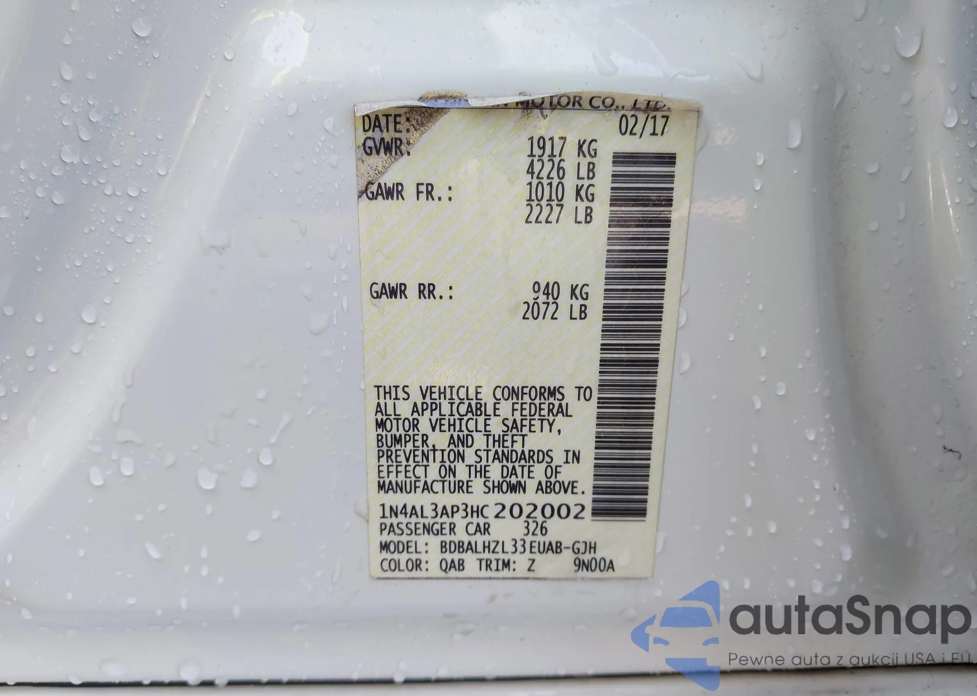 LOT: 42160655 VIN: 1N4AL3AP3HC202002