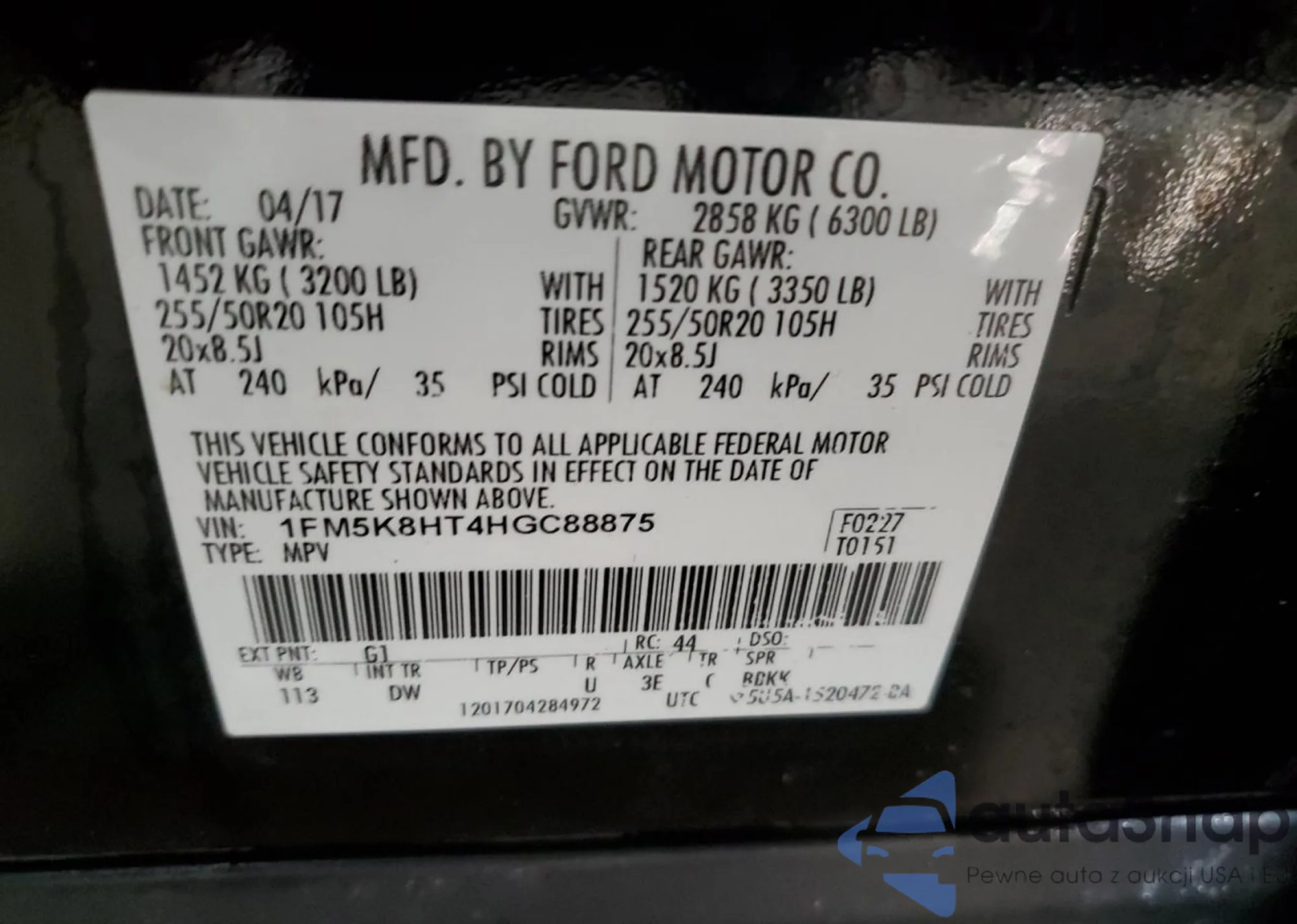 LOT: 46108605 VIN: 1FM5K8HT4HGC88875