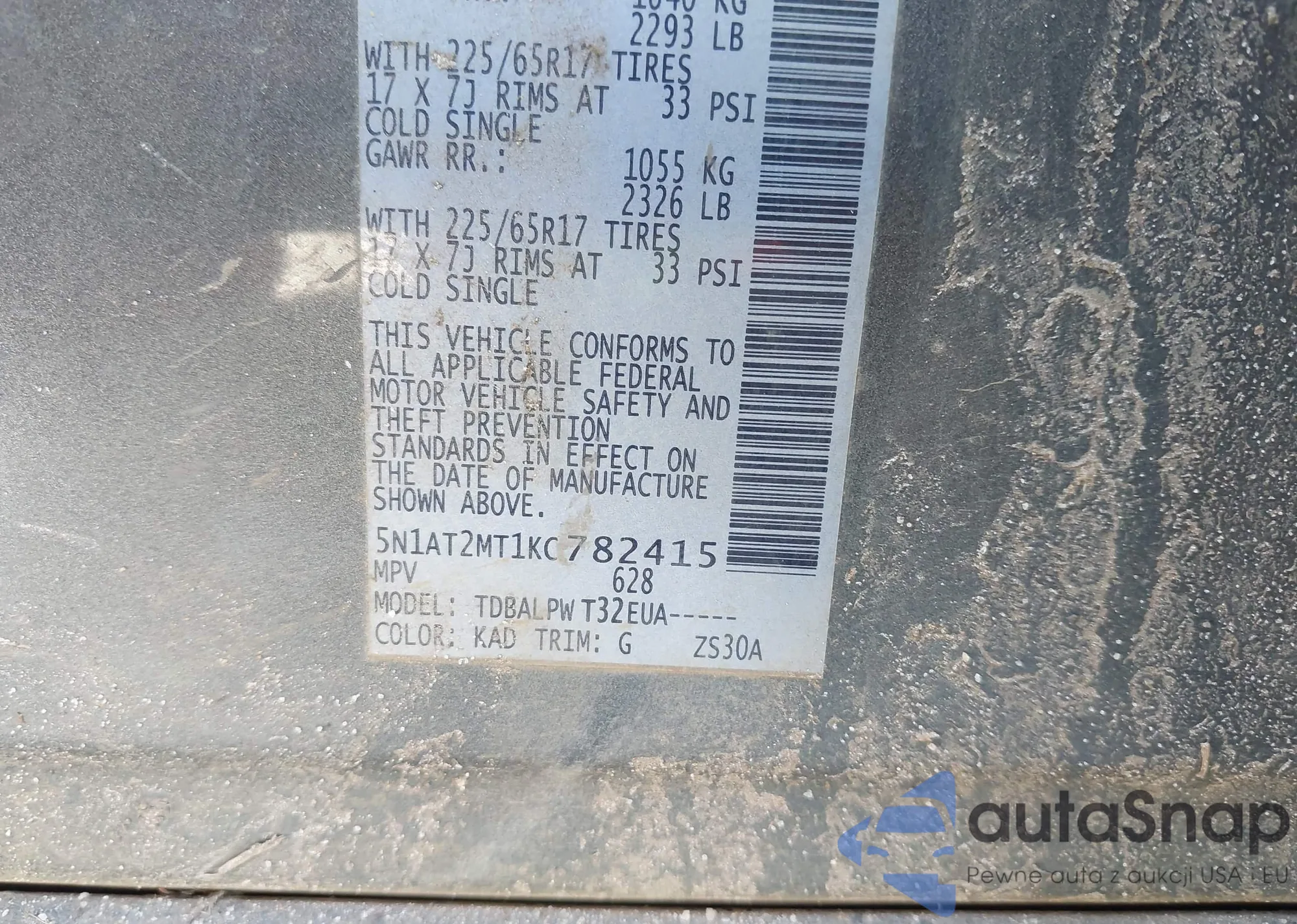 LOT: 42060419 VIN: 5N1AT2MT1KC782415