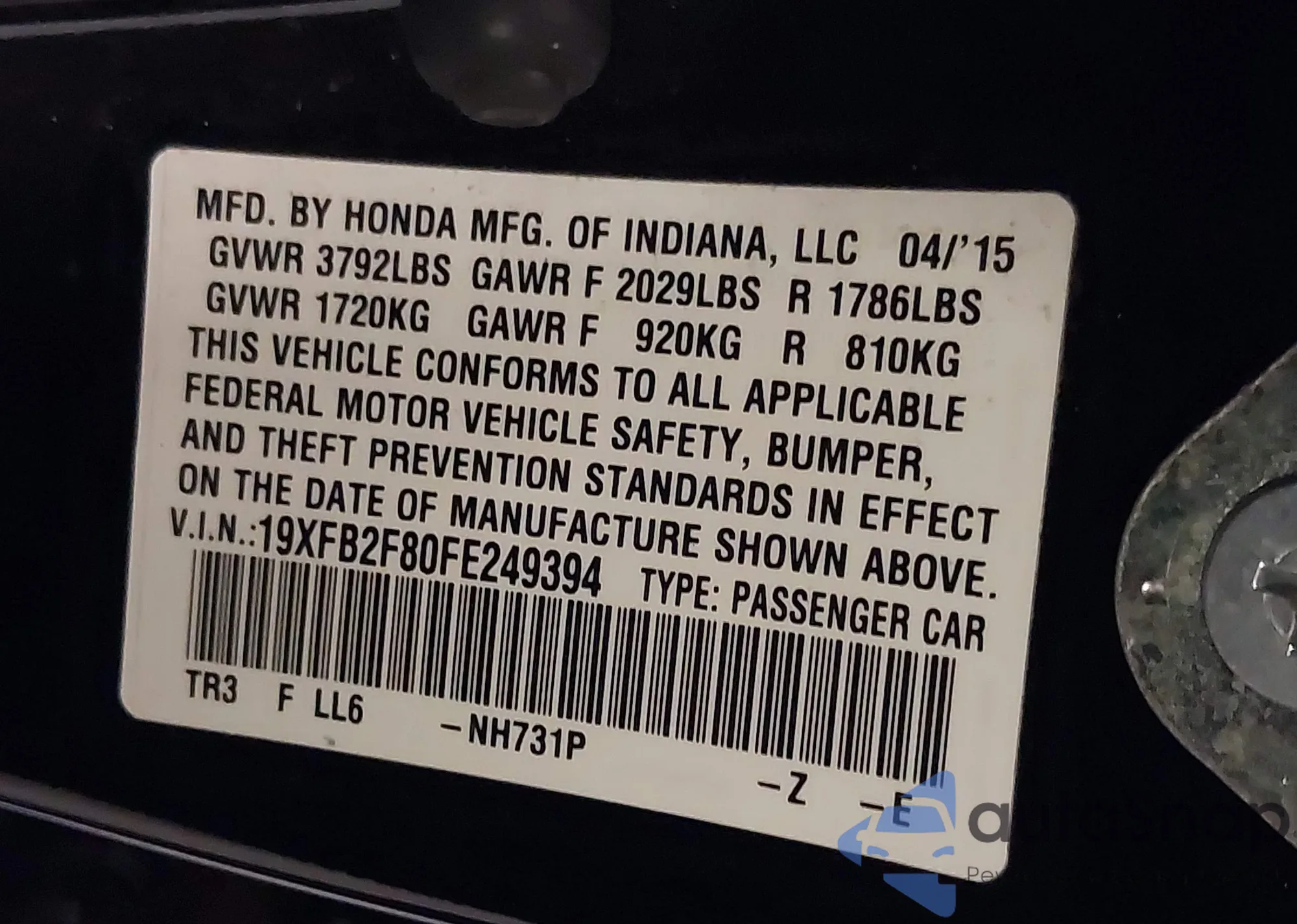 • VIN 19XFB2F80FE249394