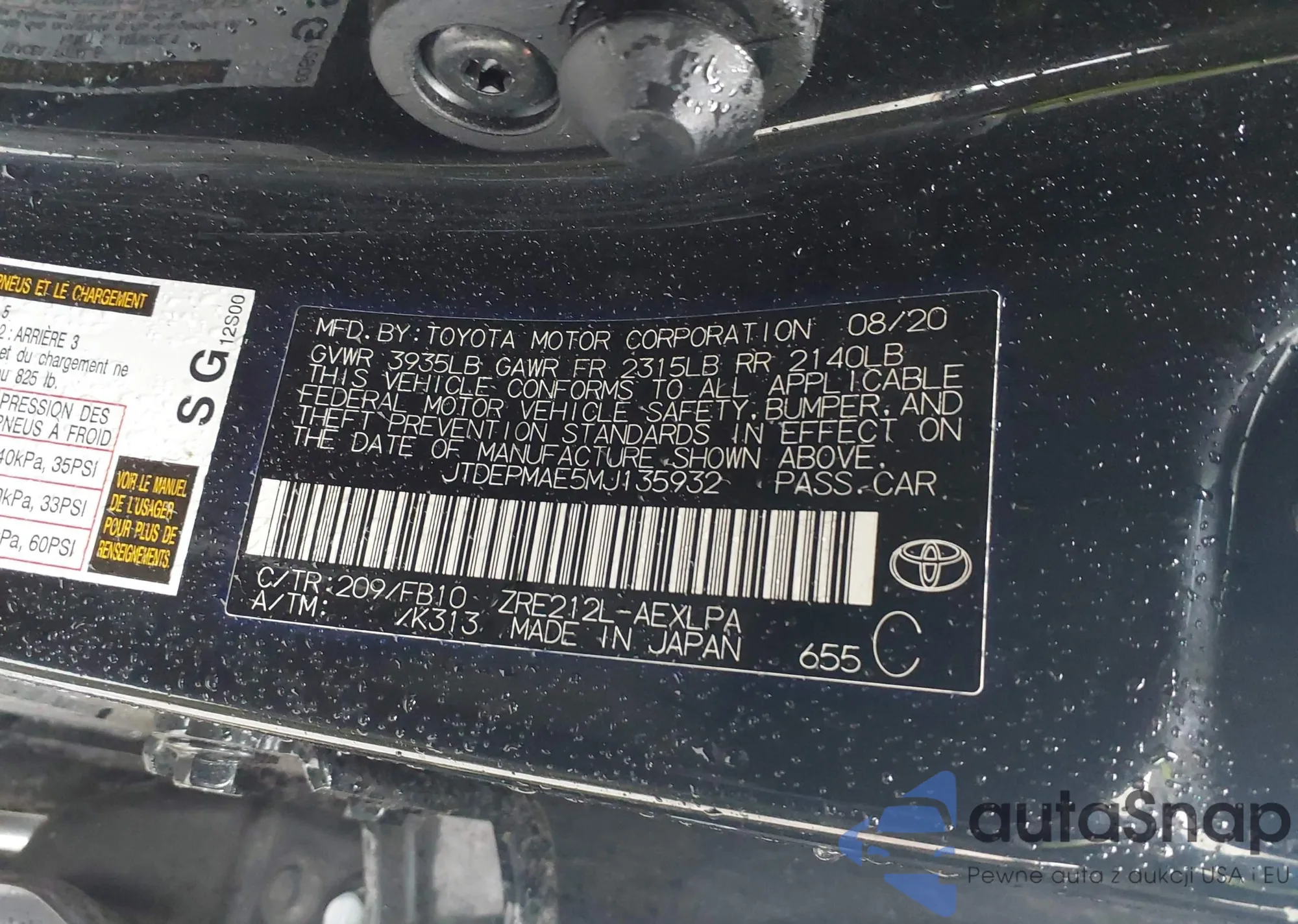LOT: 42316960 VIN: JTEDP21A750088922