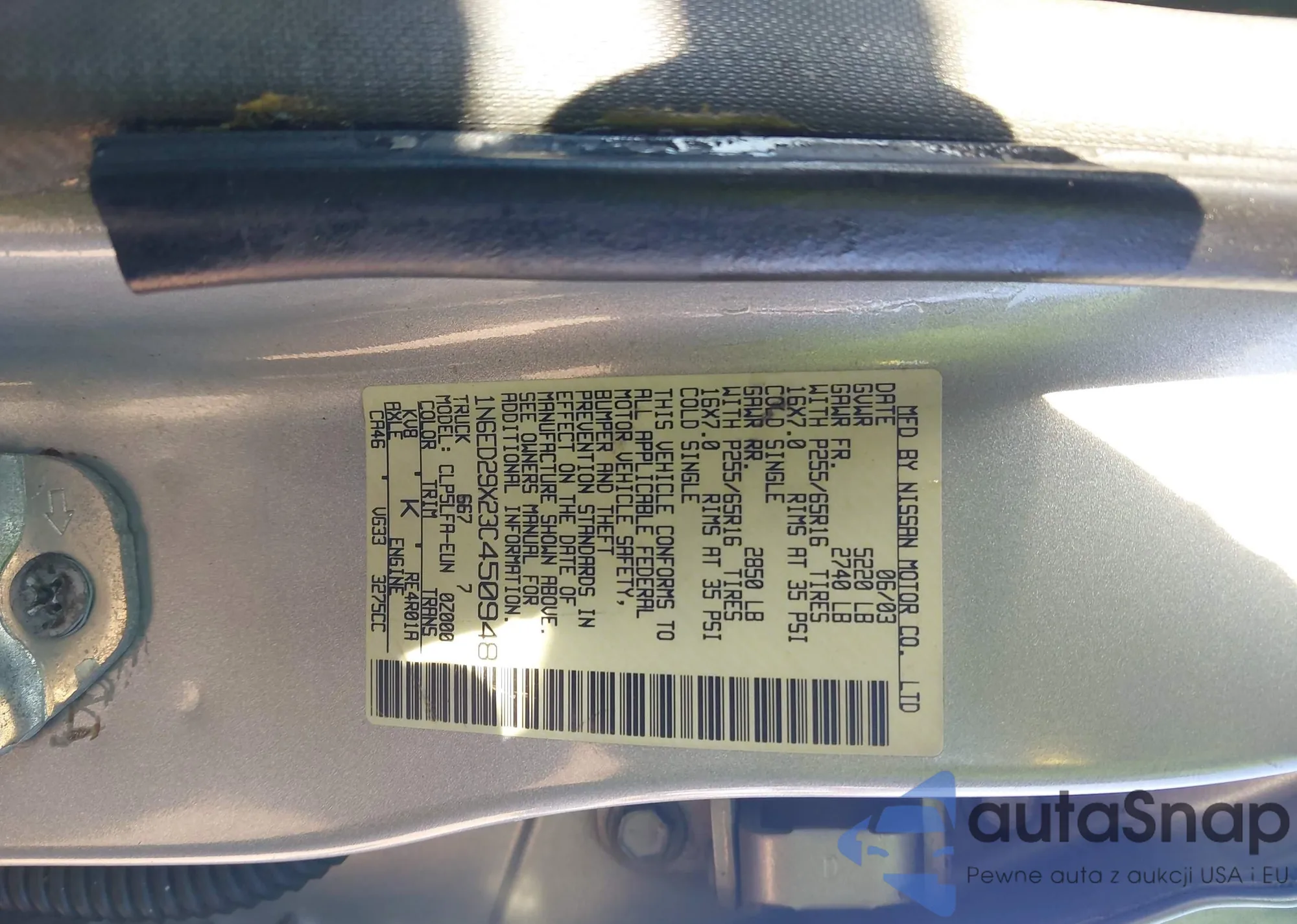 • VIN 1N6ED29X23C450948