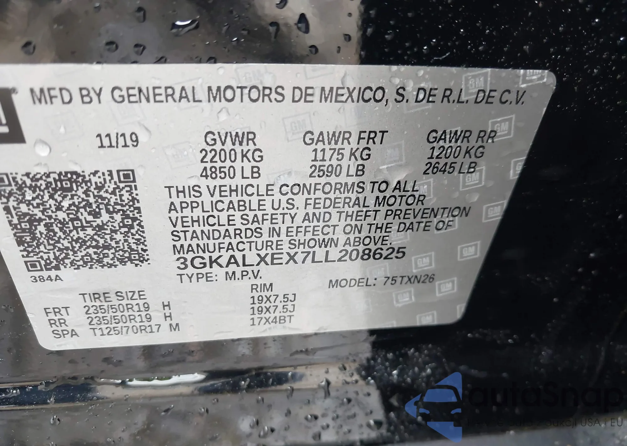 • VIN 3GKALXEX7LL208625