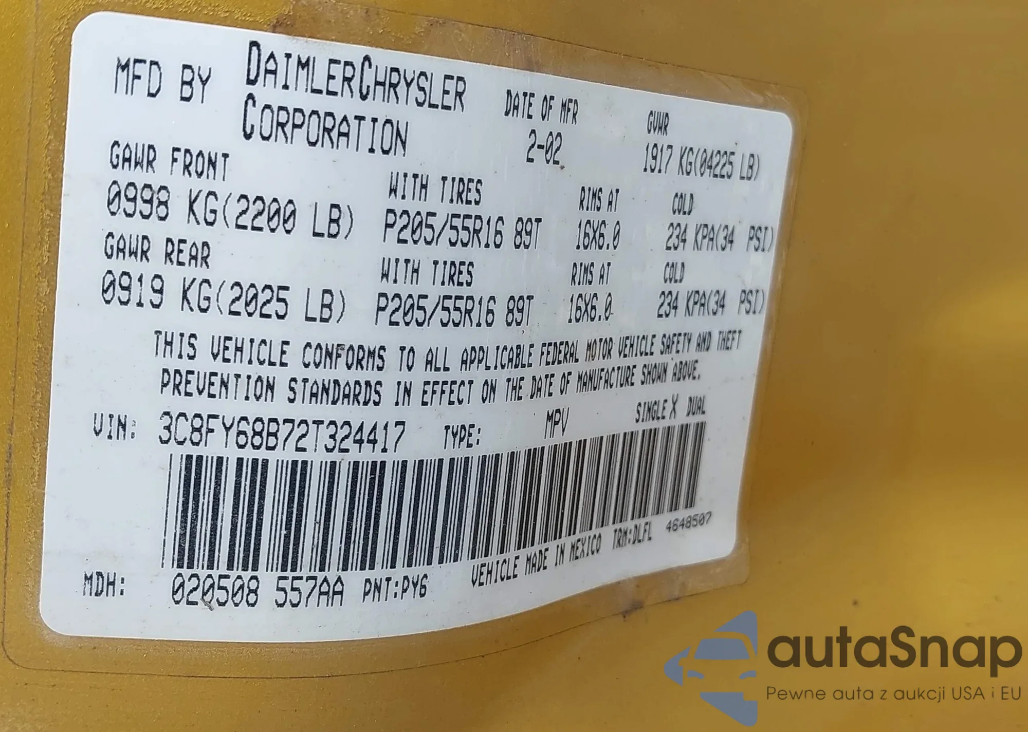 LOT: 42311017 VIN: 3C8FY68B72T324417