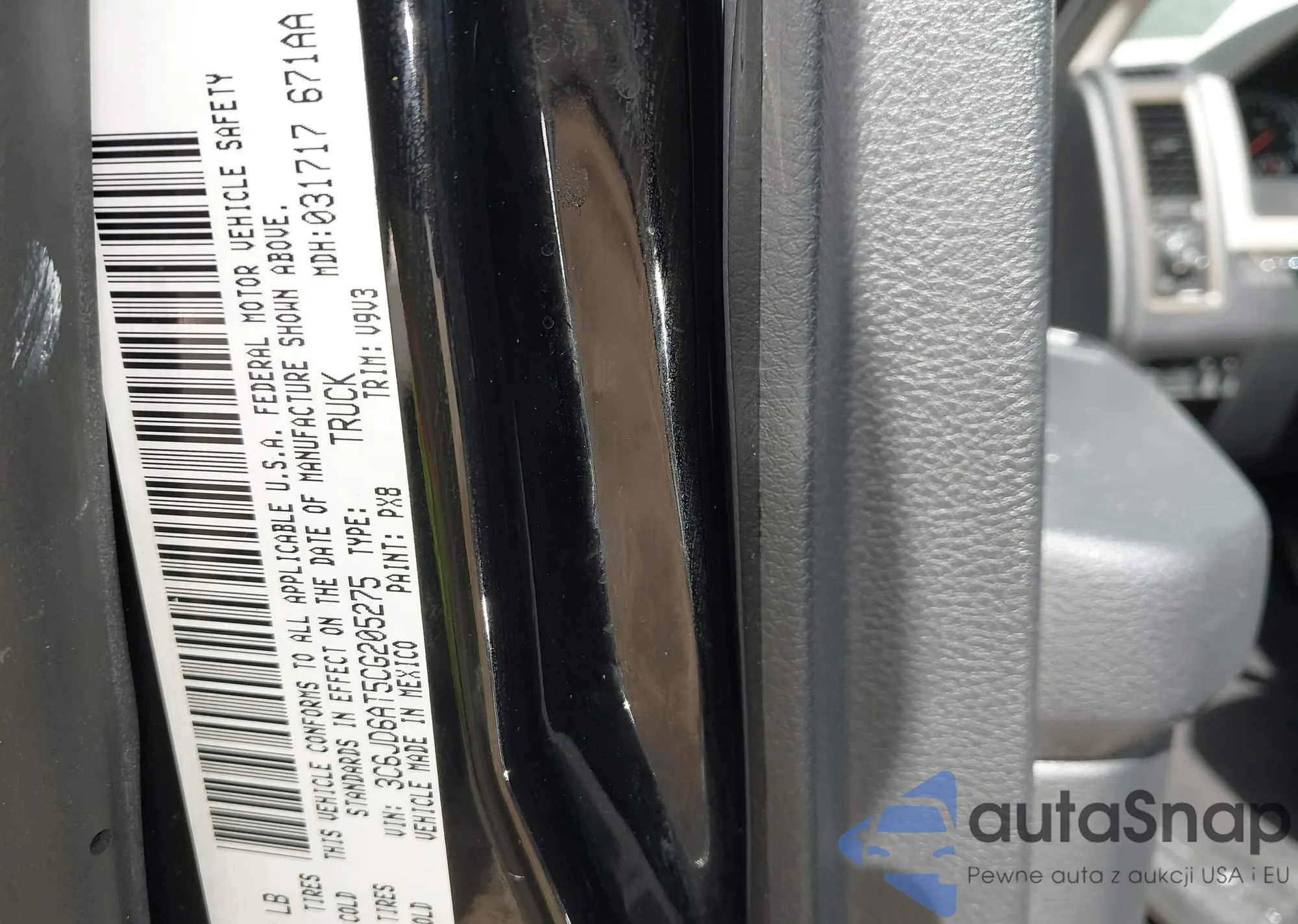 • VIN 3C6JD6AT5CG205275