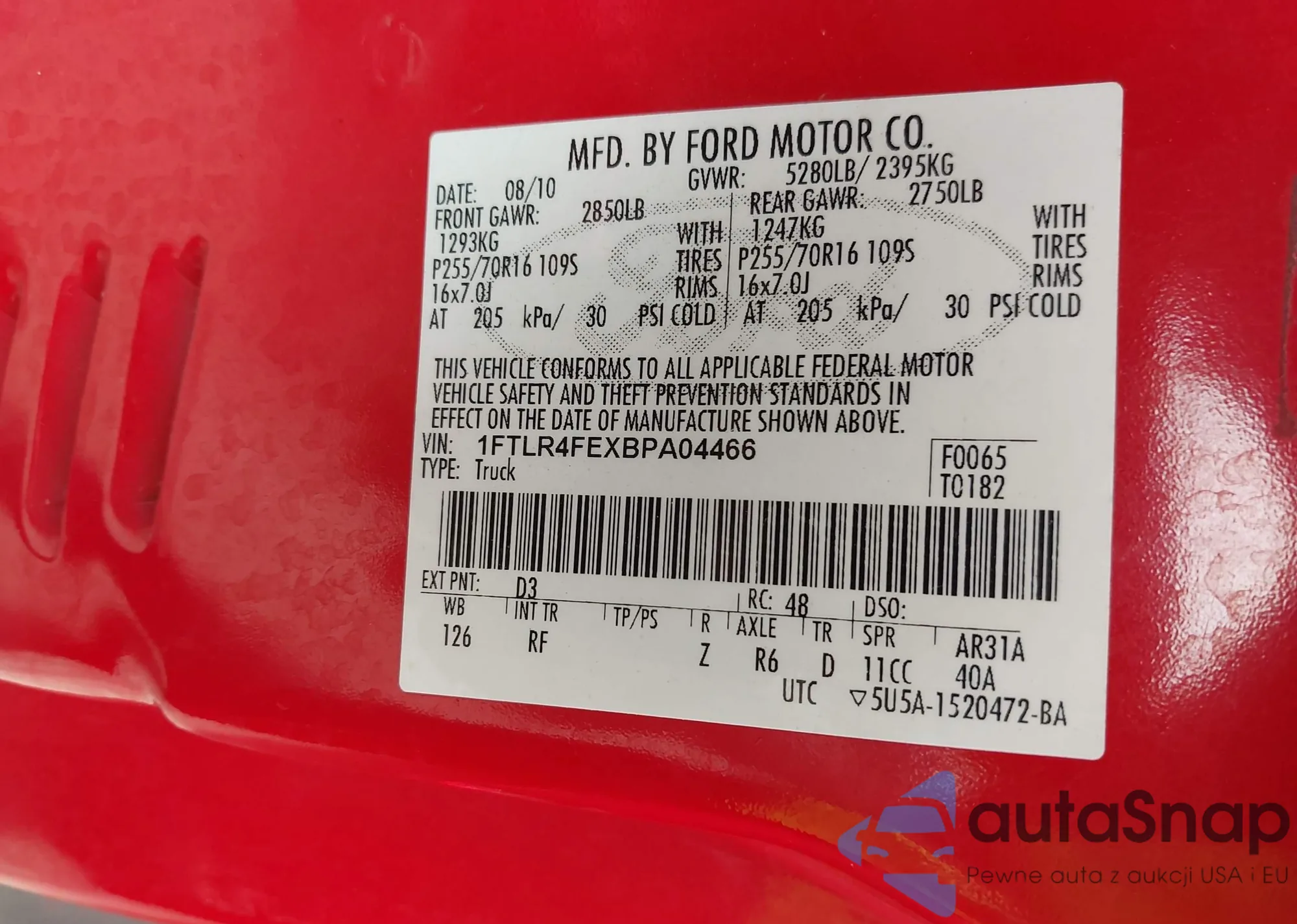 • VIN 1FTLR4FEXBPA04466