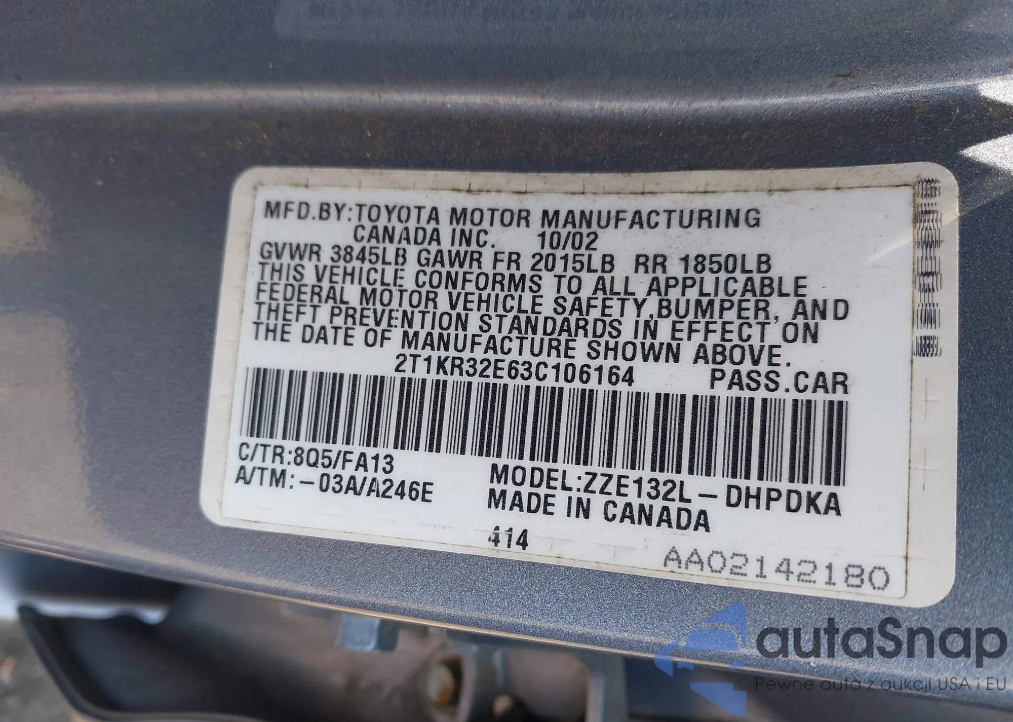 • VIN 2T2HA31U05C043636