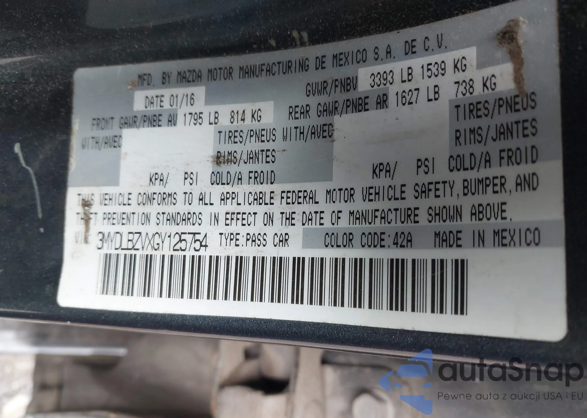 LOT: 42234664 VIN: 3MYDLBZVXGY125754