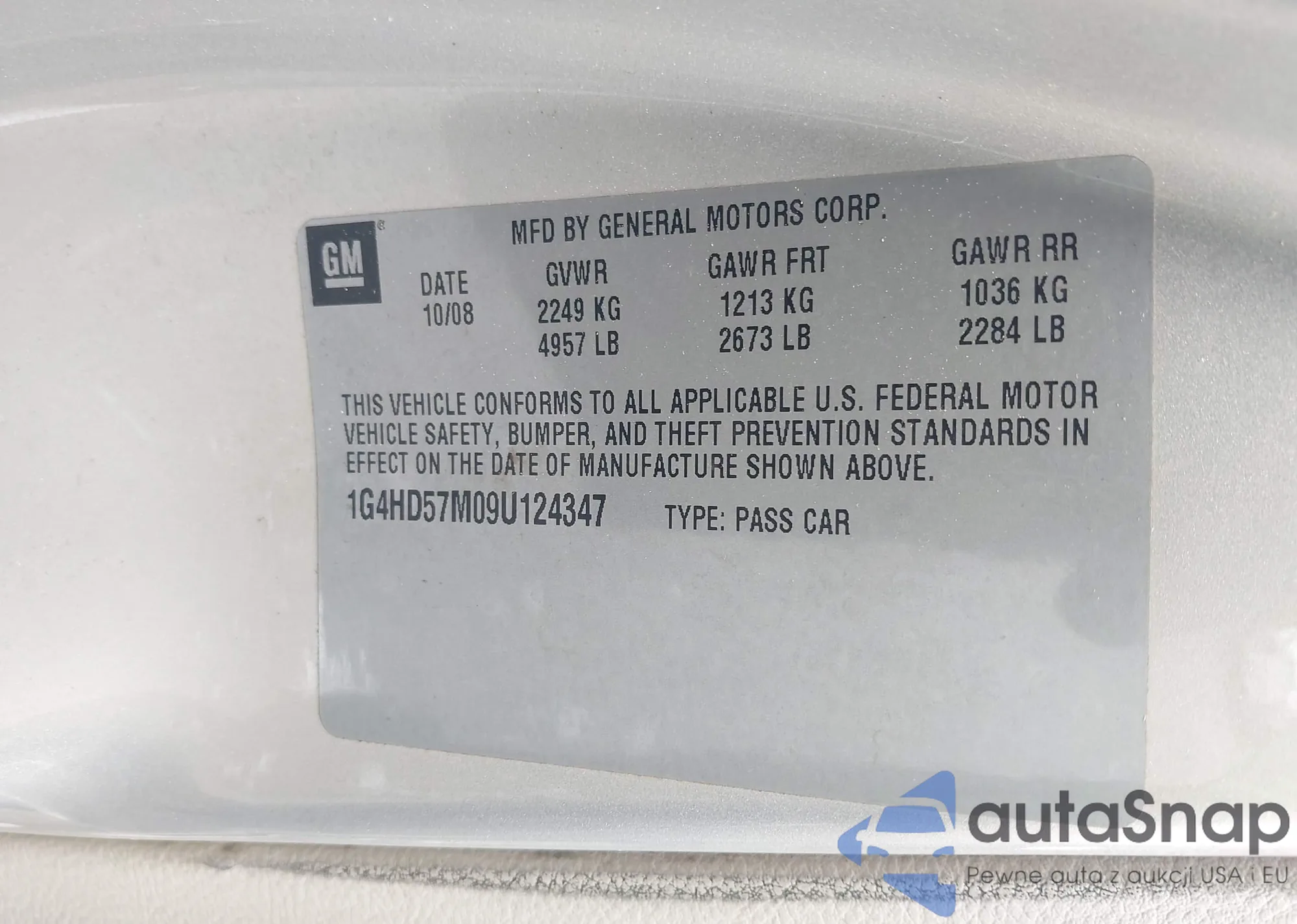 • VIN 1G4HD57M09U124347