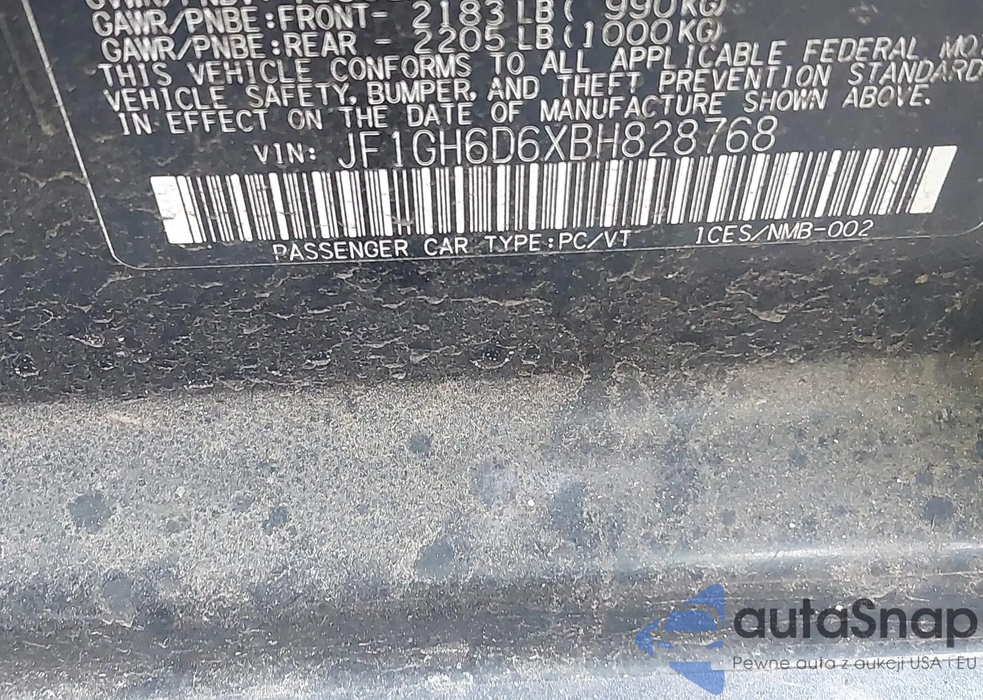 LOT: 42356502 VIN: JF1GH6D6XBH828768