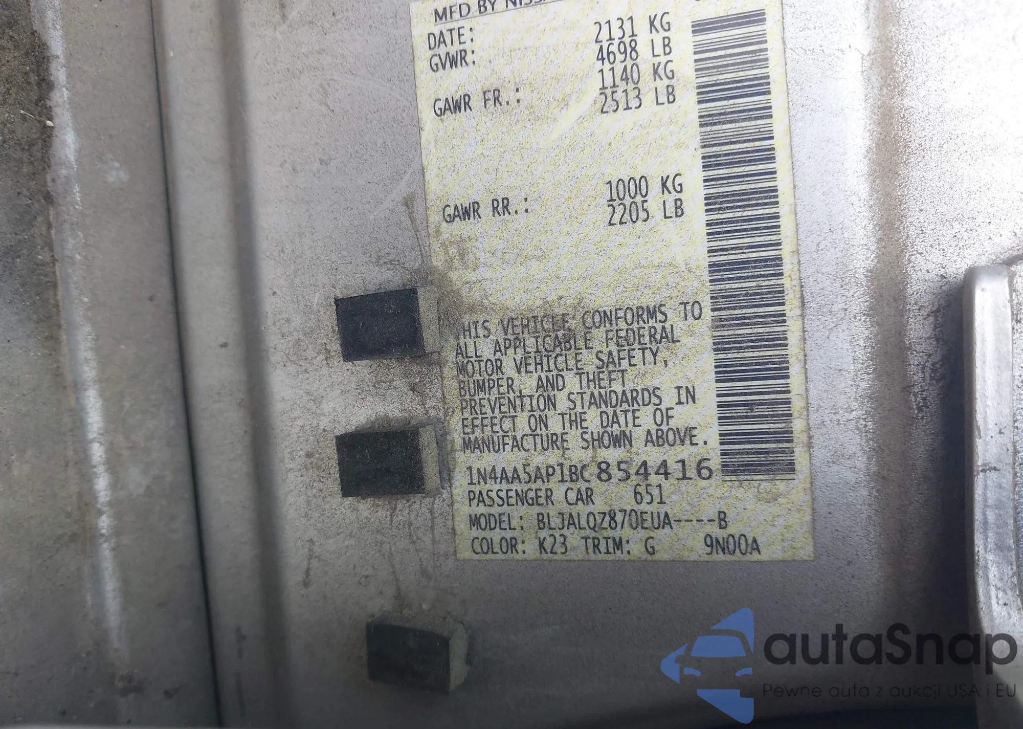 • VIN 1N4AA5AP1BC854416