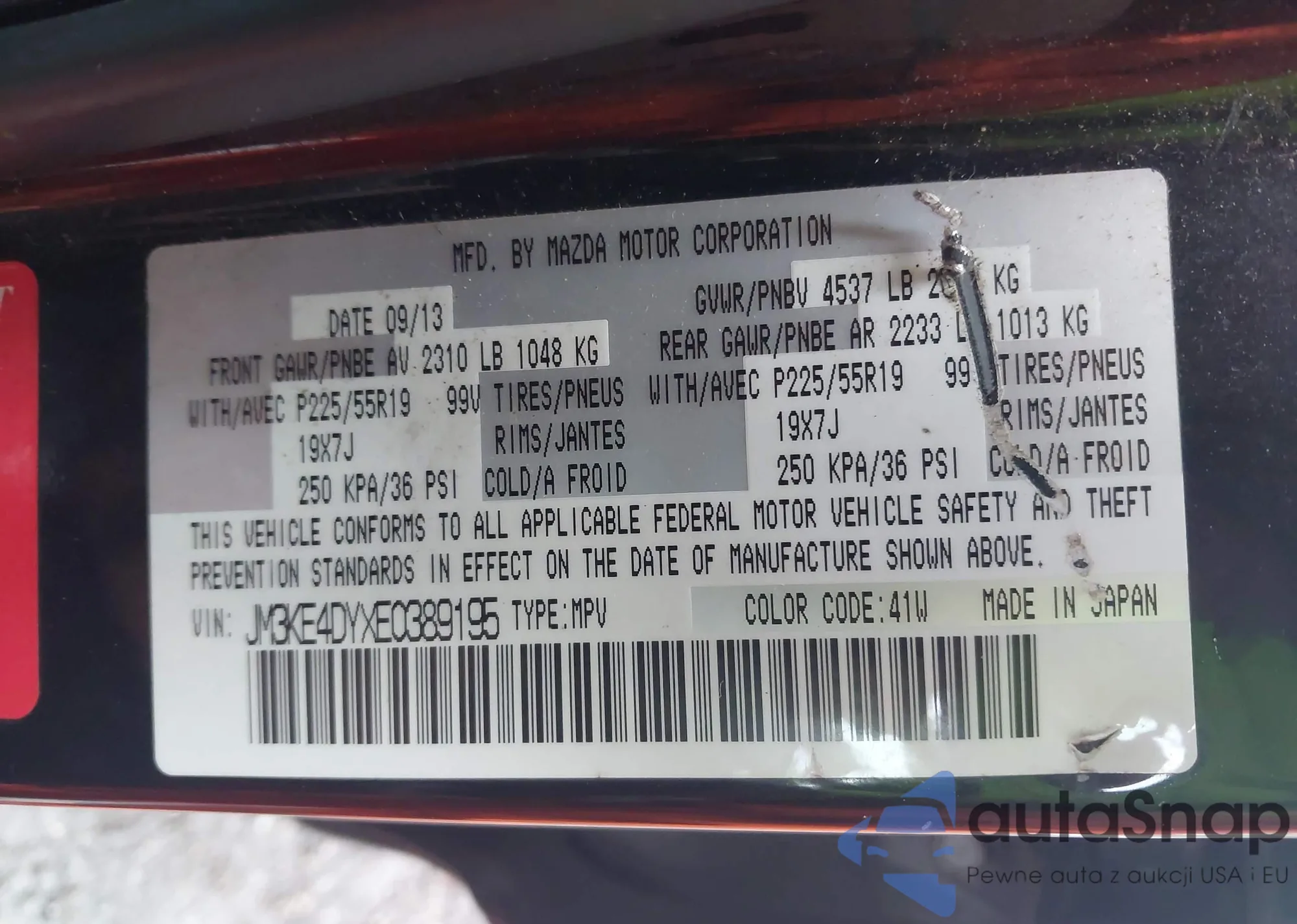 LOT: 42263319 VIN: JM3KE4DYXE0389195