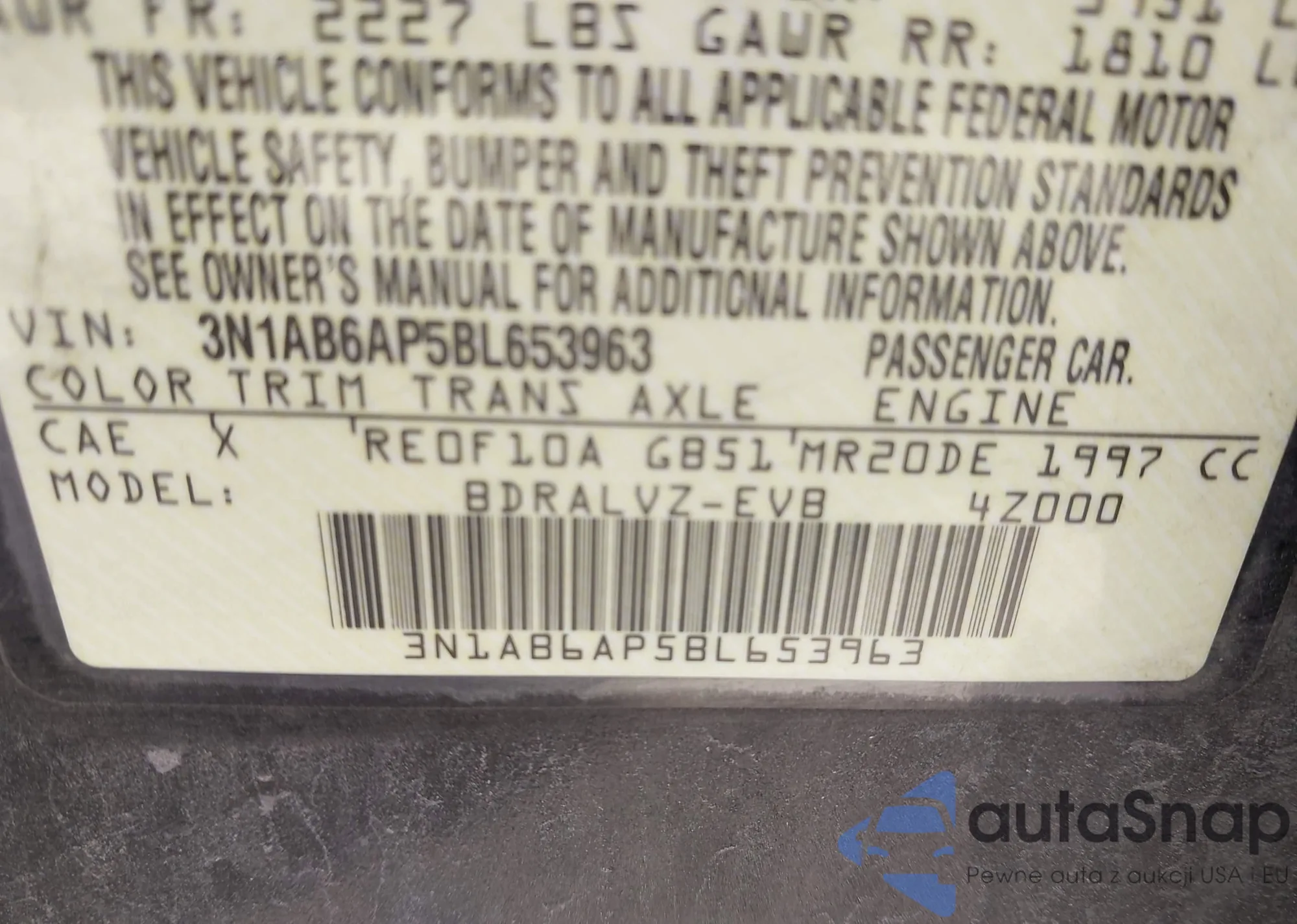 • VIN 3N1AB6AP5BL653963