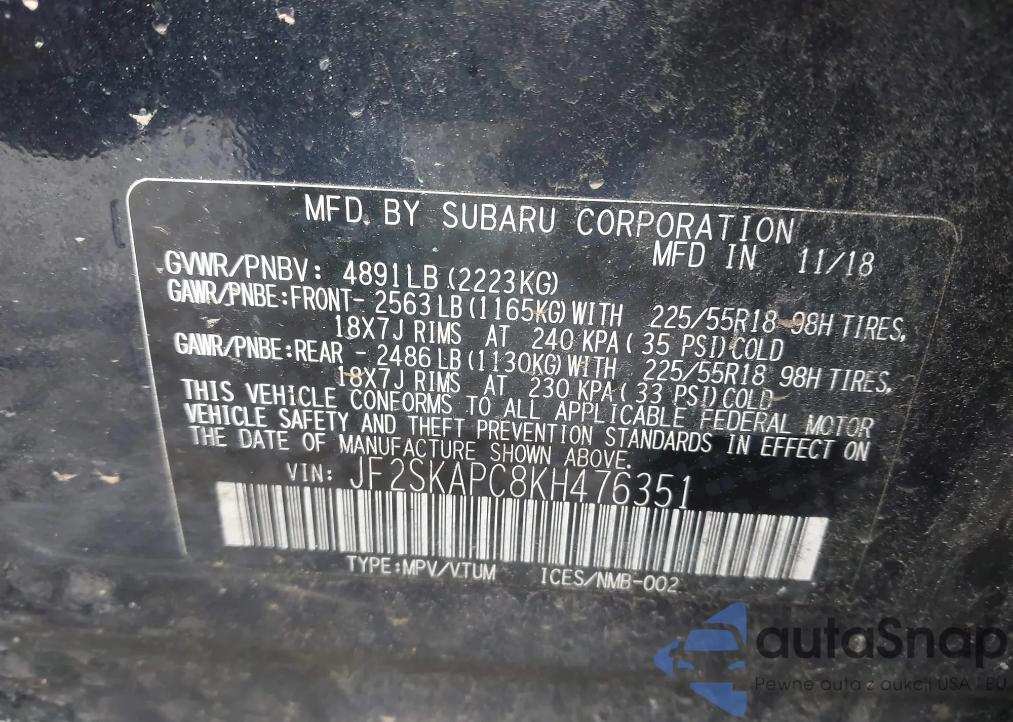 LOT: 42186385 VIN: KNADH5A32B6768298