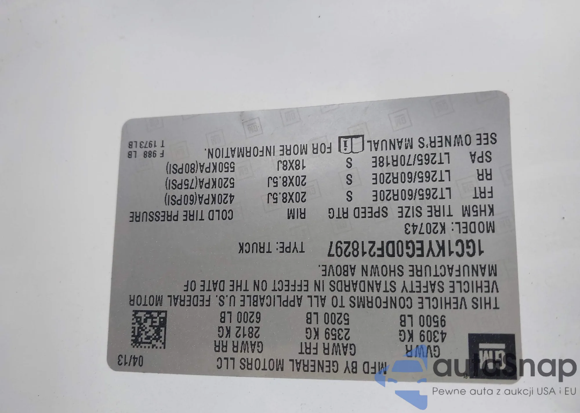 • VIN 1GC1KYEG0DF218297