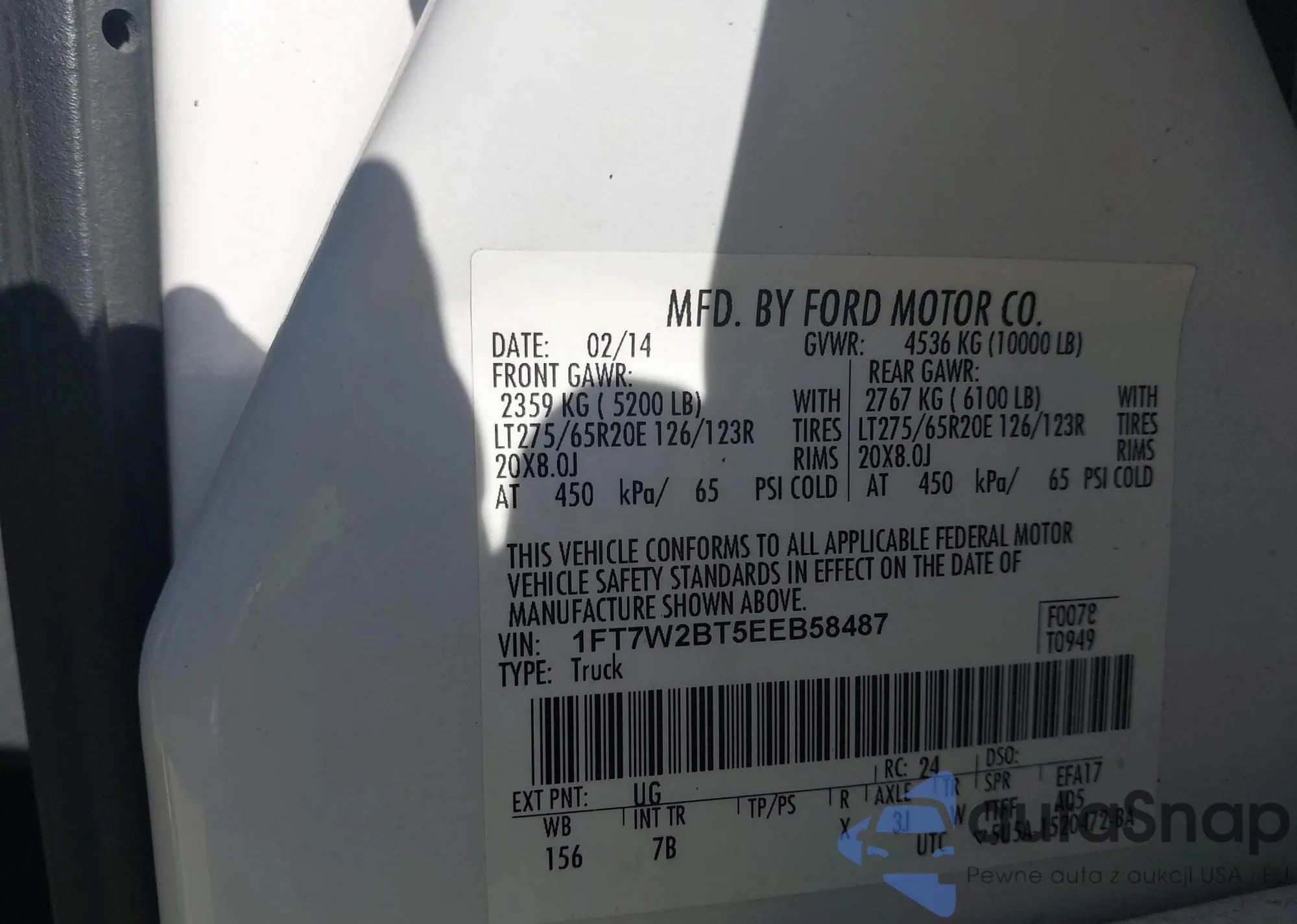 LOT: 42234678 VIN: 1FT7W2BT5EEB58487