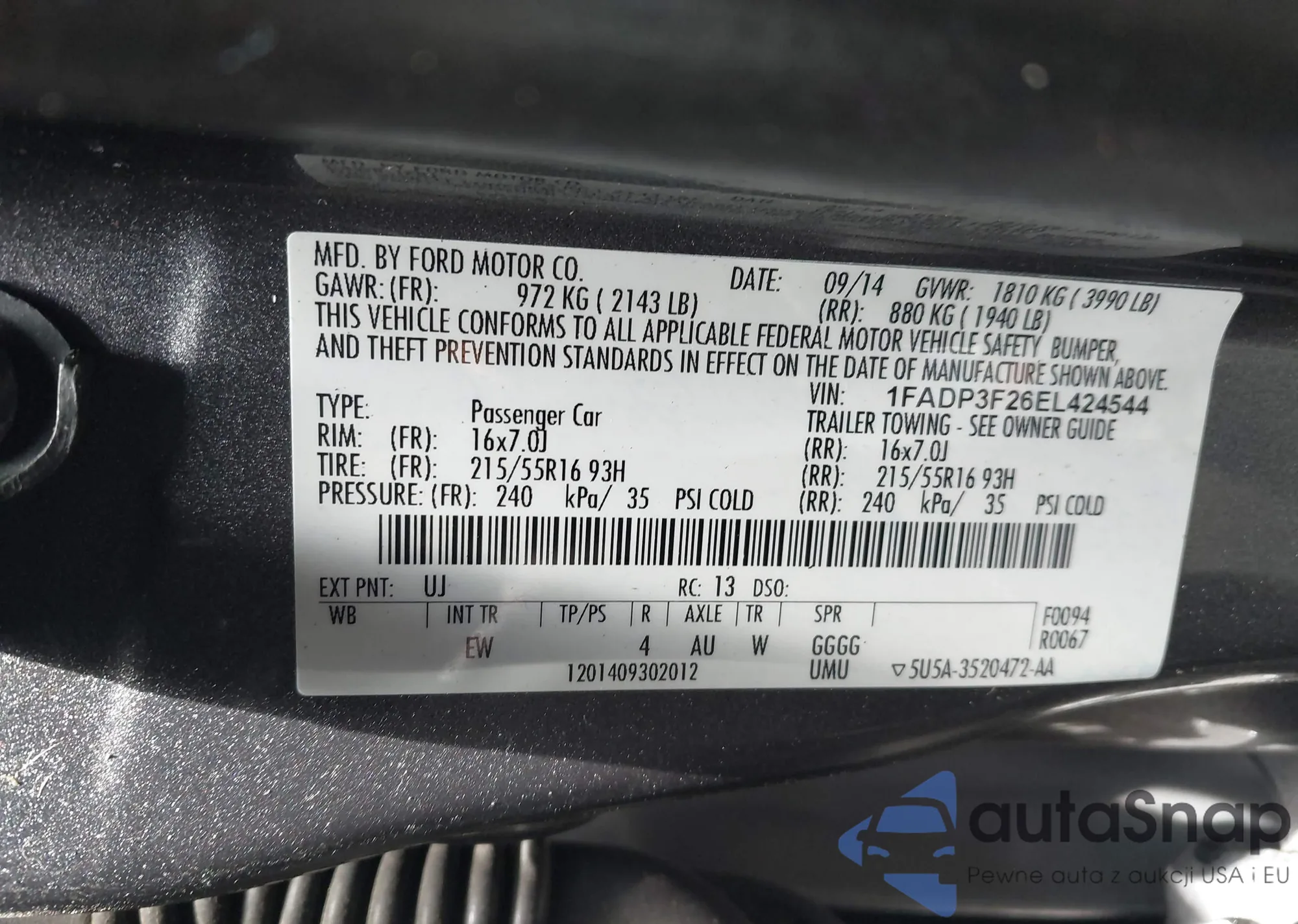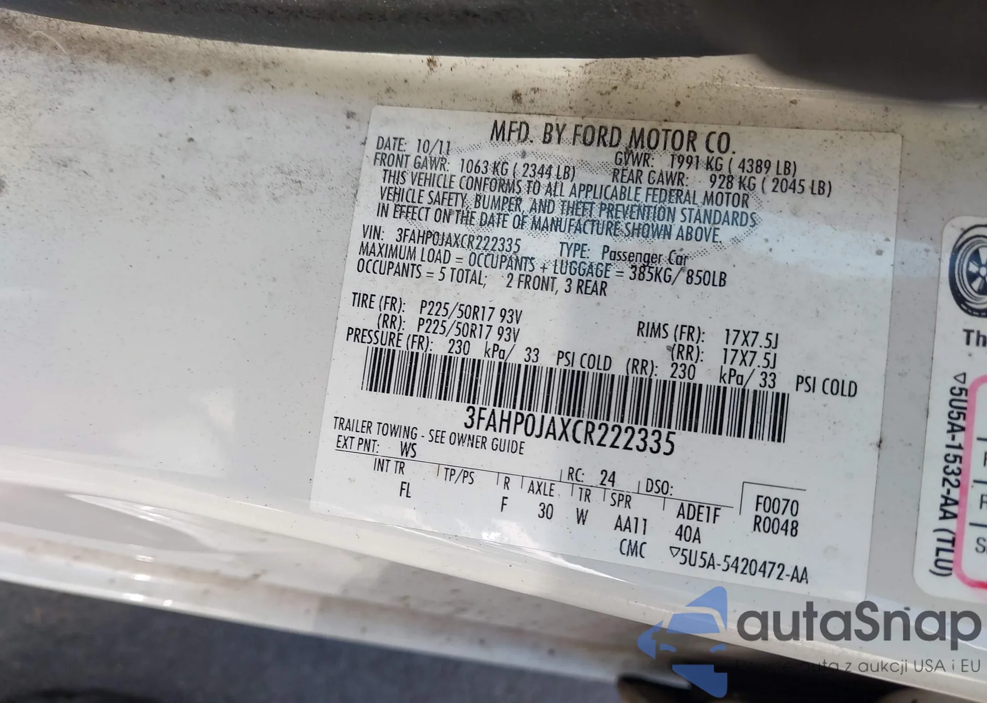 • VIN 3FAHP0JAXCR222335