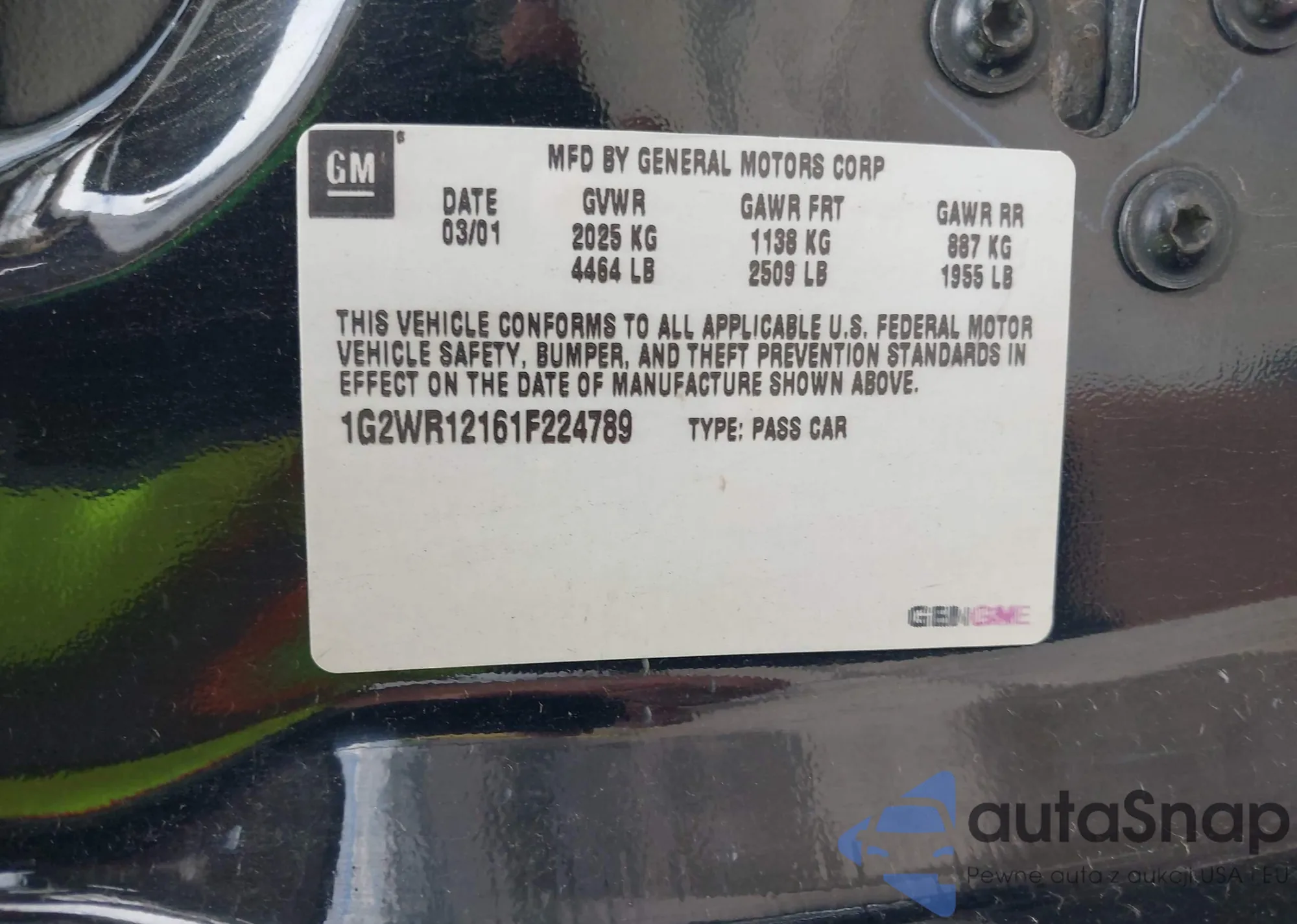 • VIN 1G2WR12161F224789