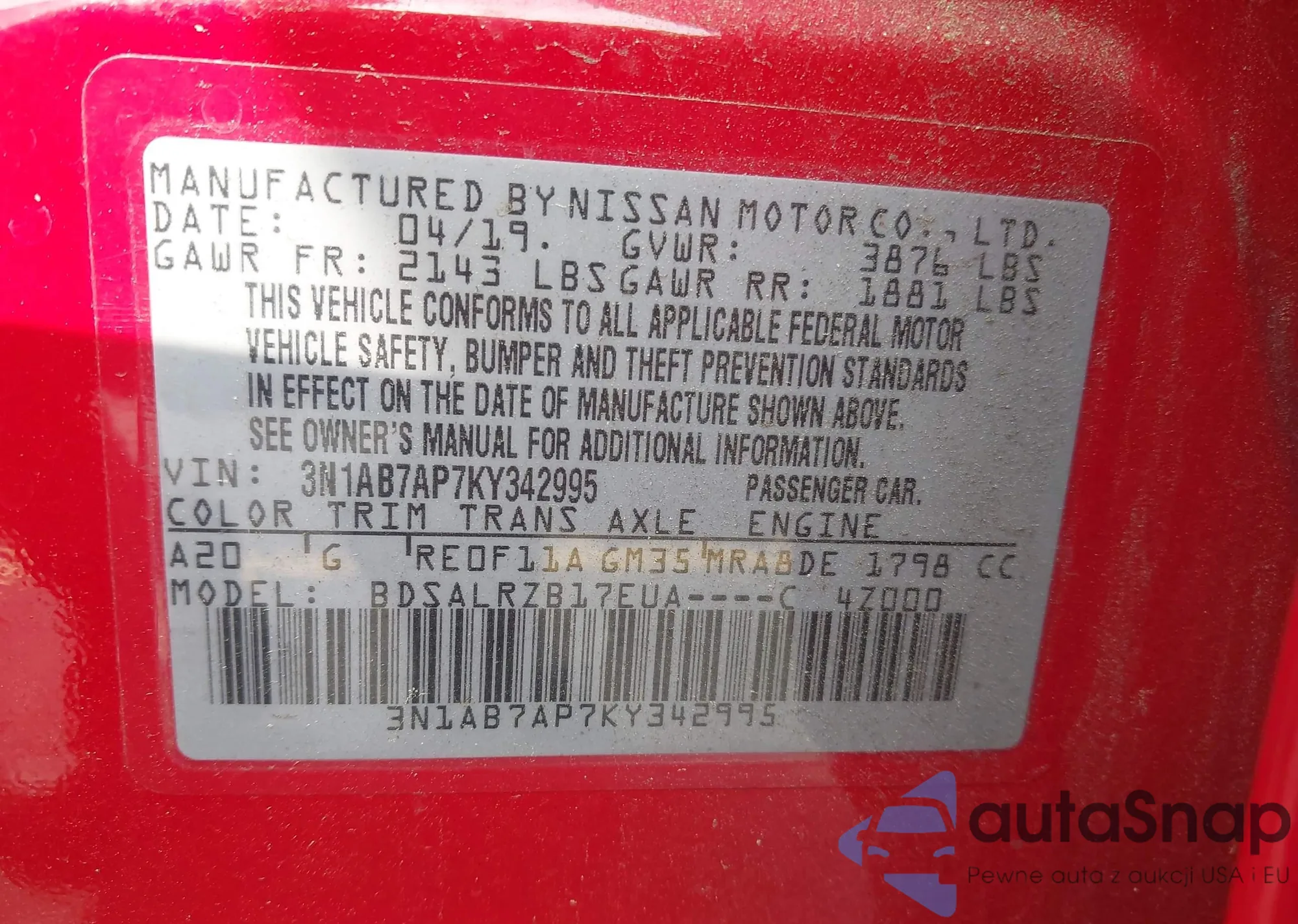LOT: 42255193 VIN: 5N1AR2MM7FC707876