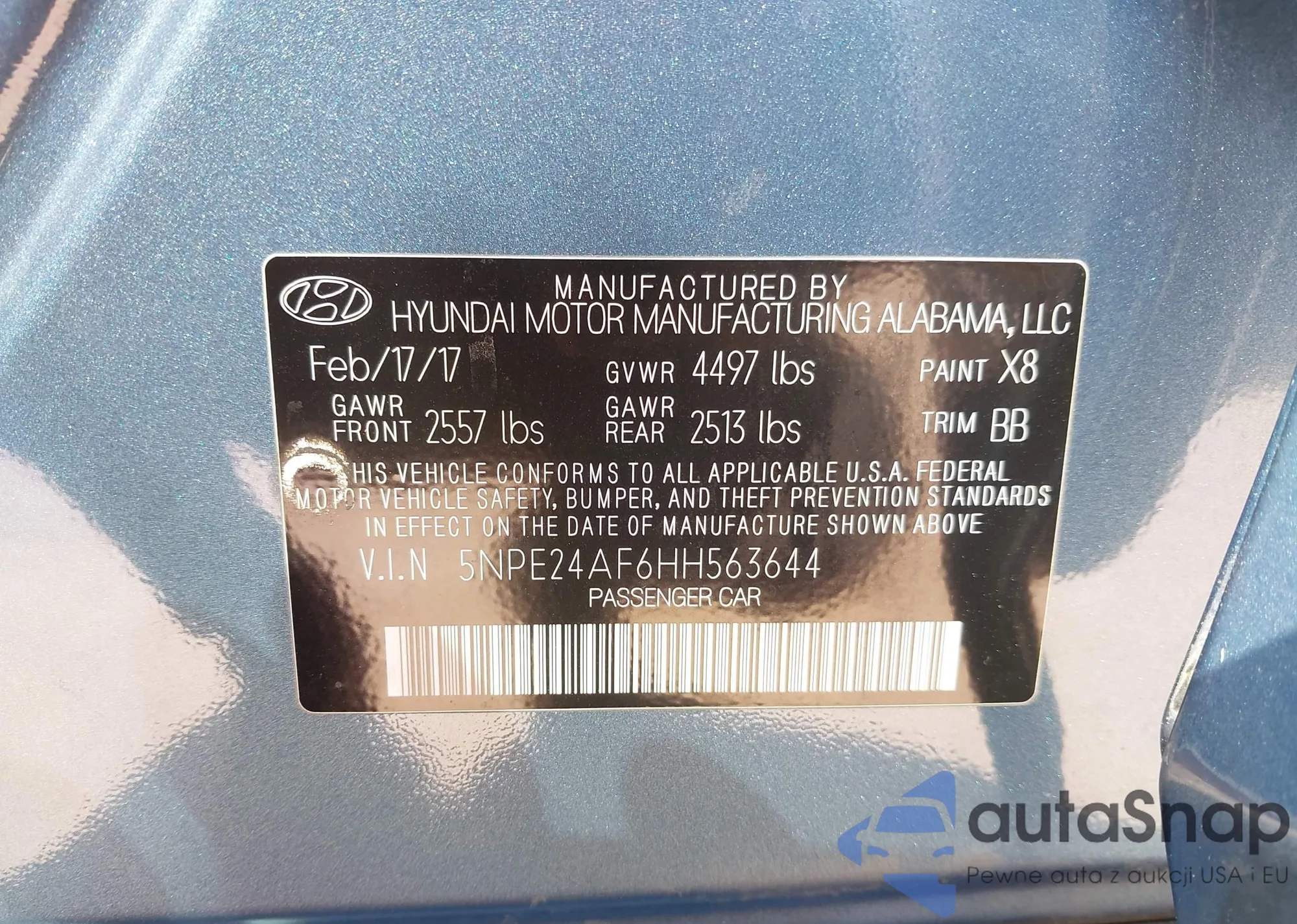 • VIN 5NPE24AF6HH563644