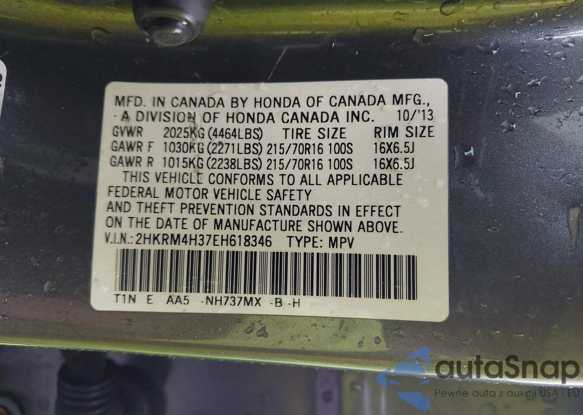 • VIN 2HKRM4H37EH618346