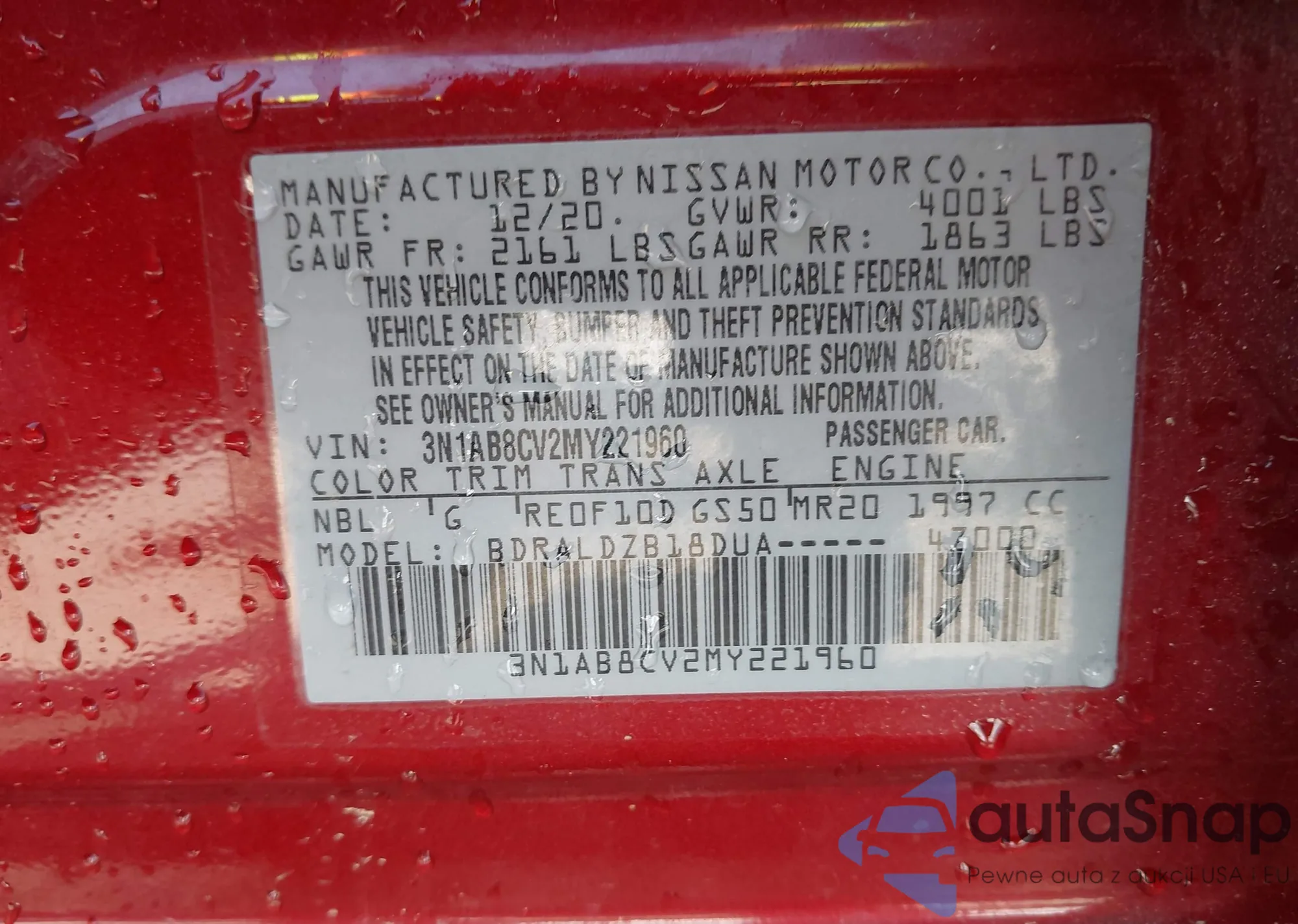 • VIN 3N1AB8CV2MY221960