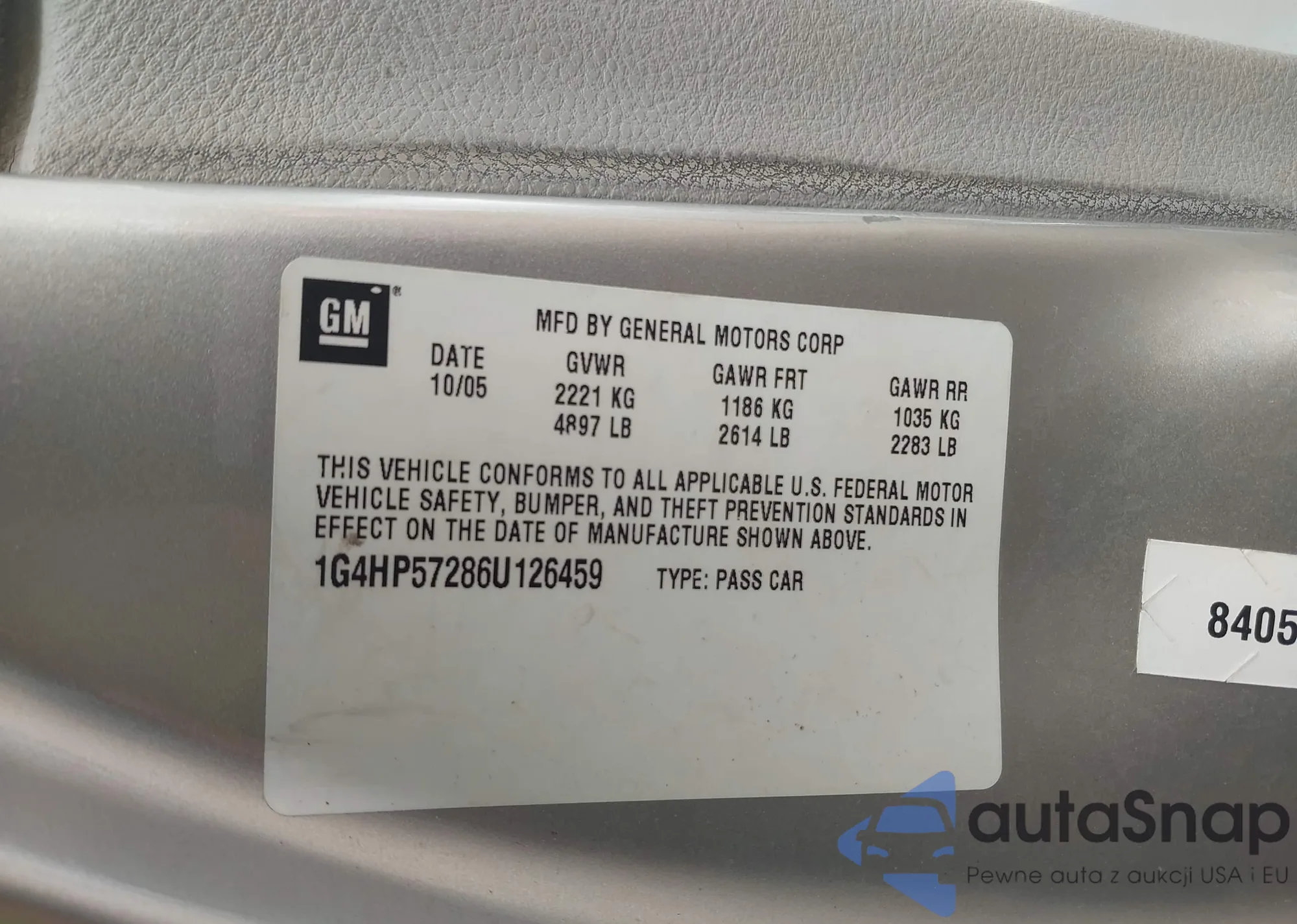 LOT: 42159801 VIN: 1G4HP57286U126459