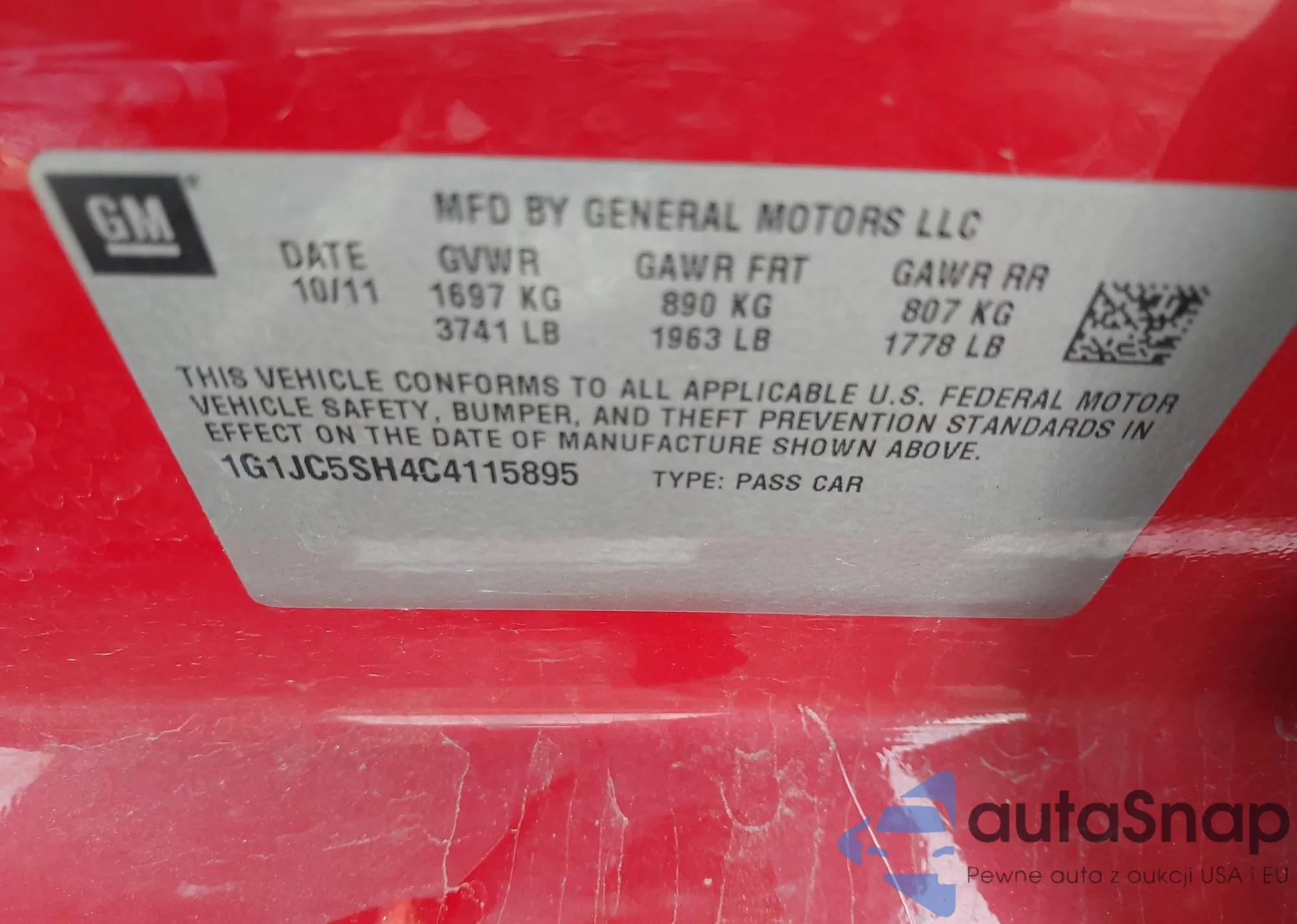 LOT: 42173529 VIN: 1G1JC5SH4C4115895