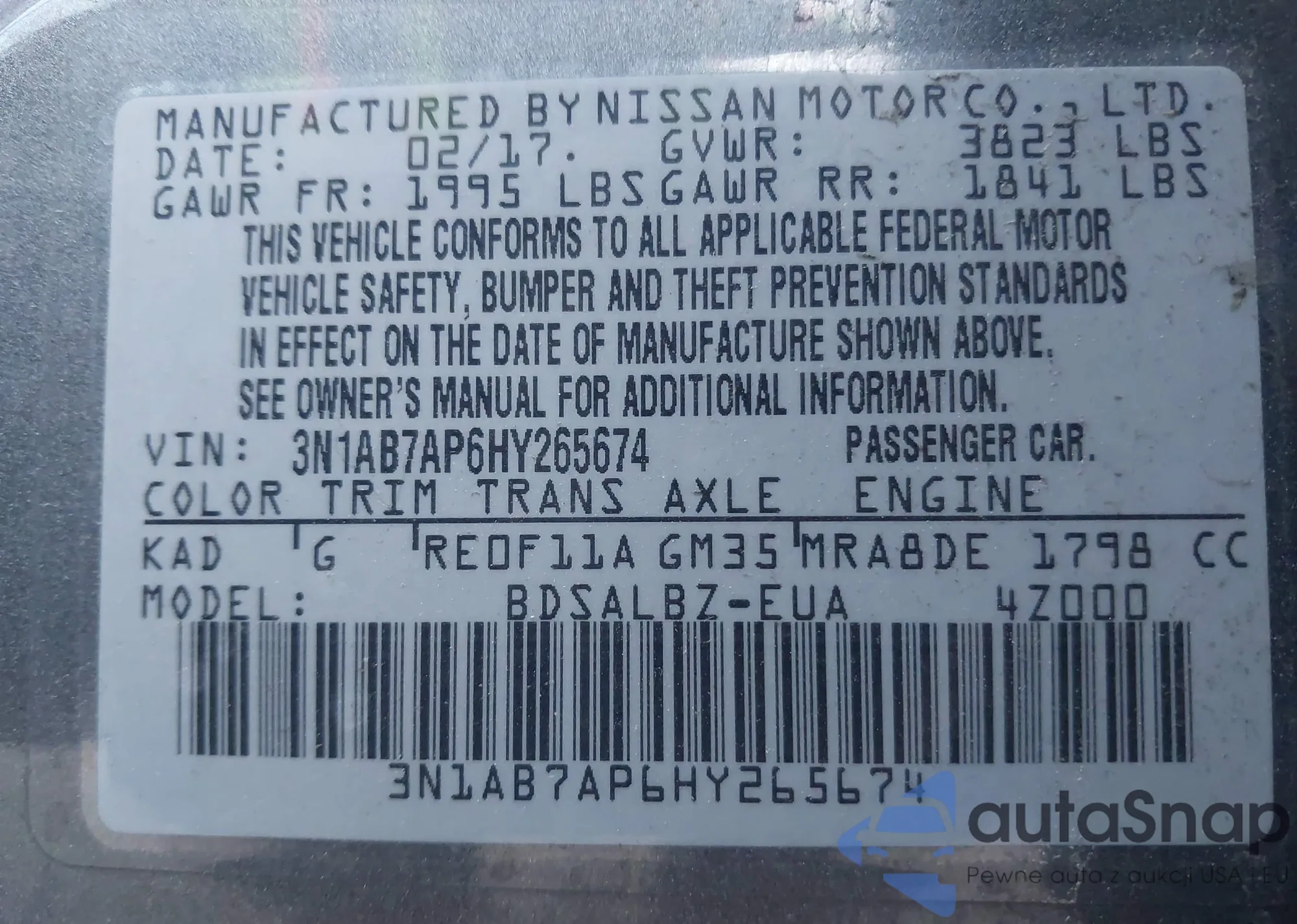 • VIN 3N1AB7AP6HY265674