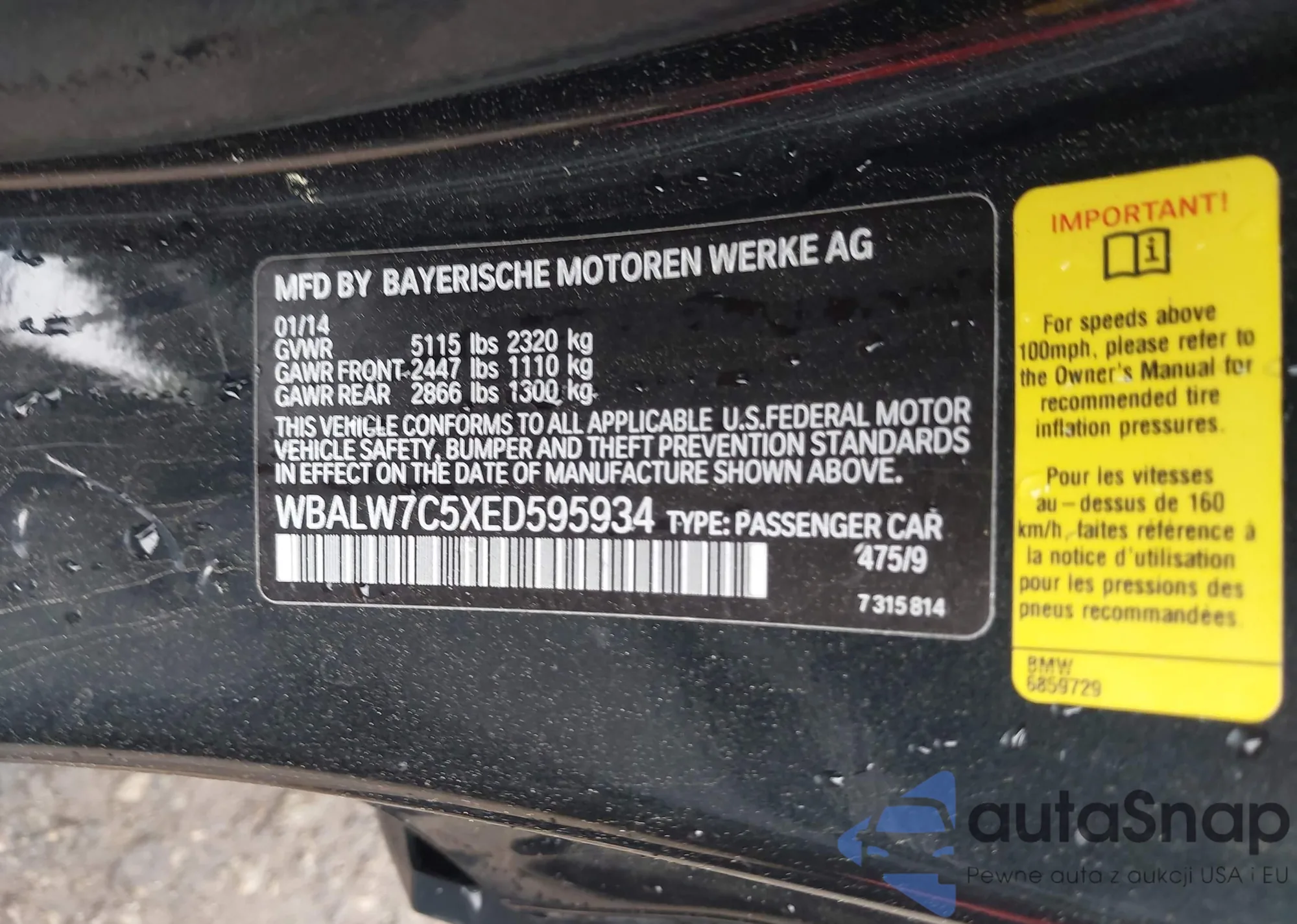• VIN WBALW7C5XED595934