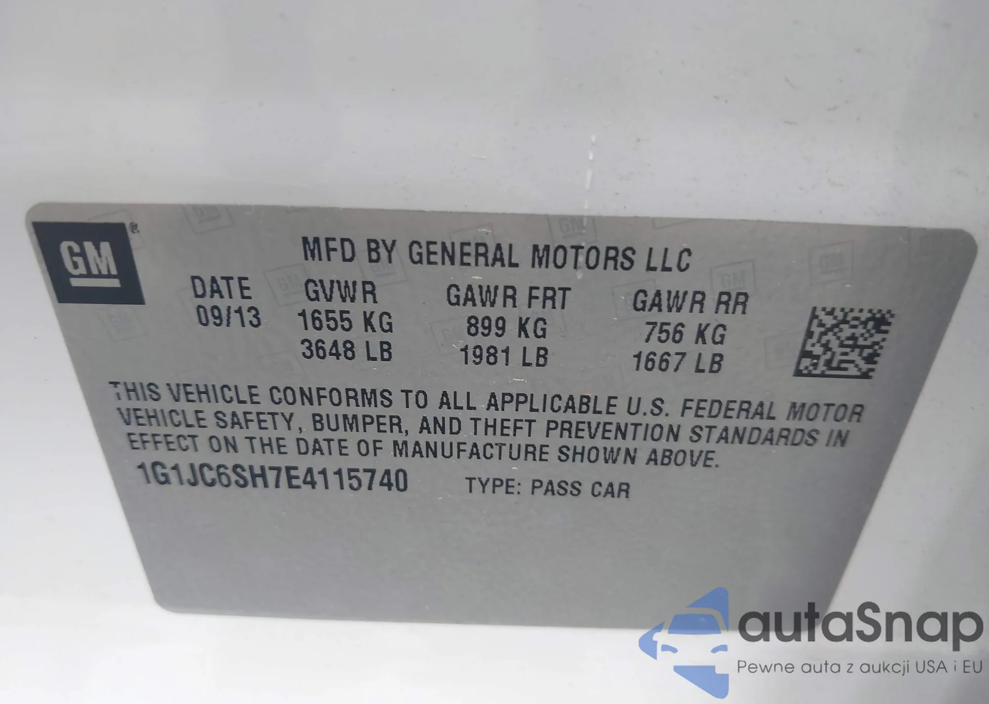 LOT: 42102130 VIN: 1G1JC6SH7E4115740