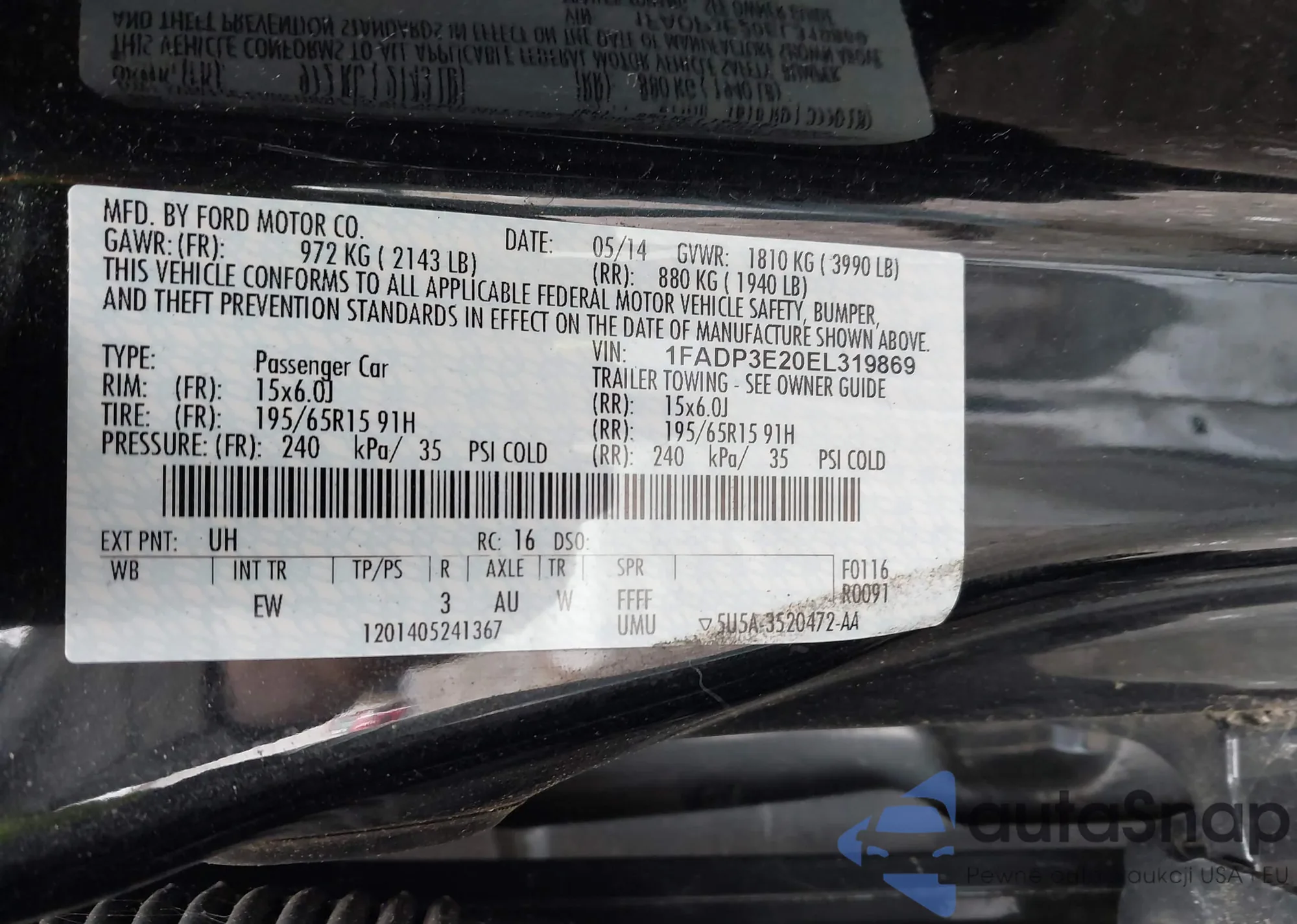 LOT: 42224866 VIN: 1FADP3E20EL319869