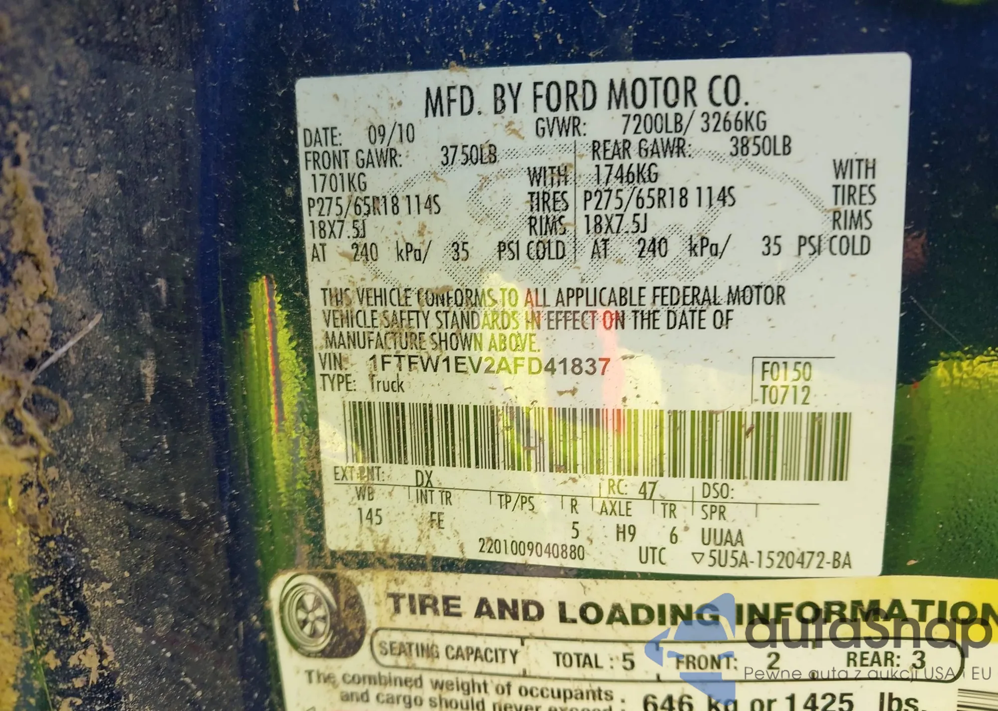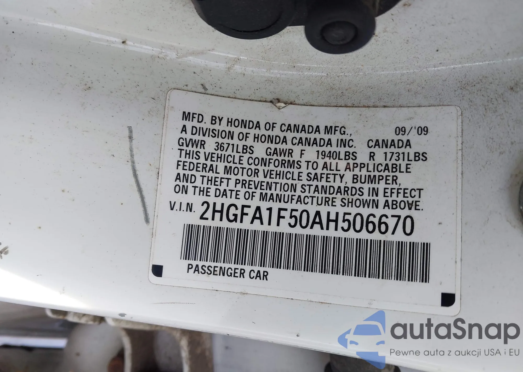 • VIN 2HGFA1F50AH506670