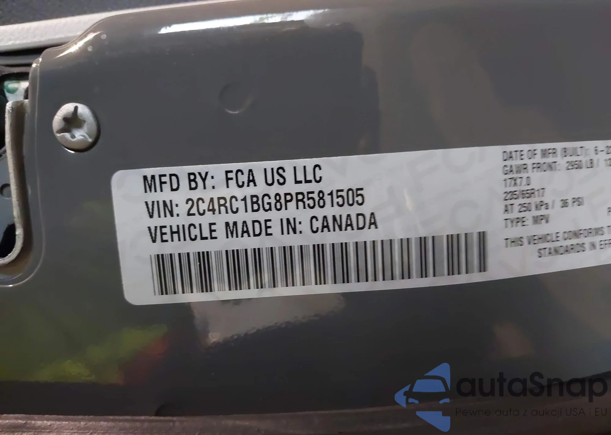 • VIN 2C4RC1BG8PR581505