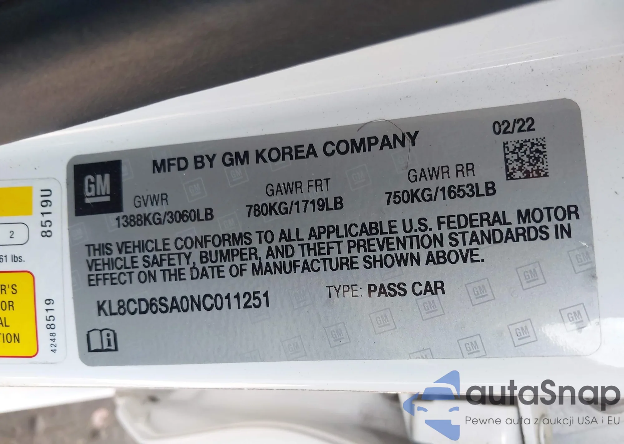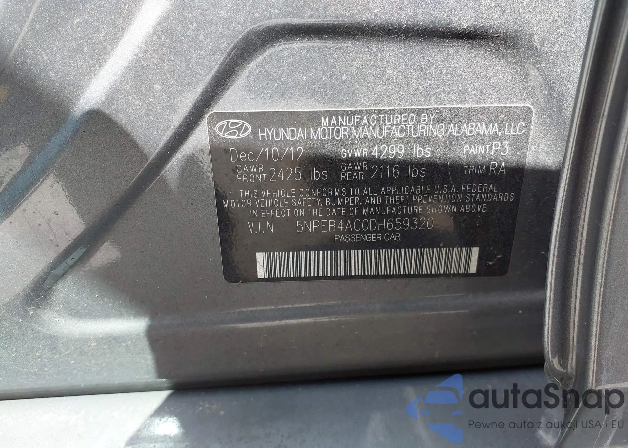 LOT: 42181958 VIN: 1HGCP2F33CA027893