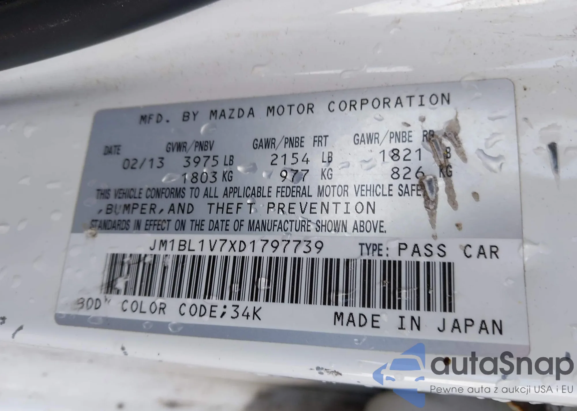 LOT: 42187110 VIN: JM1BL1V7XD1797739