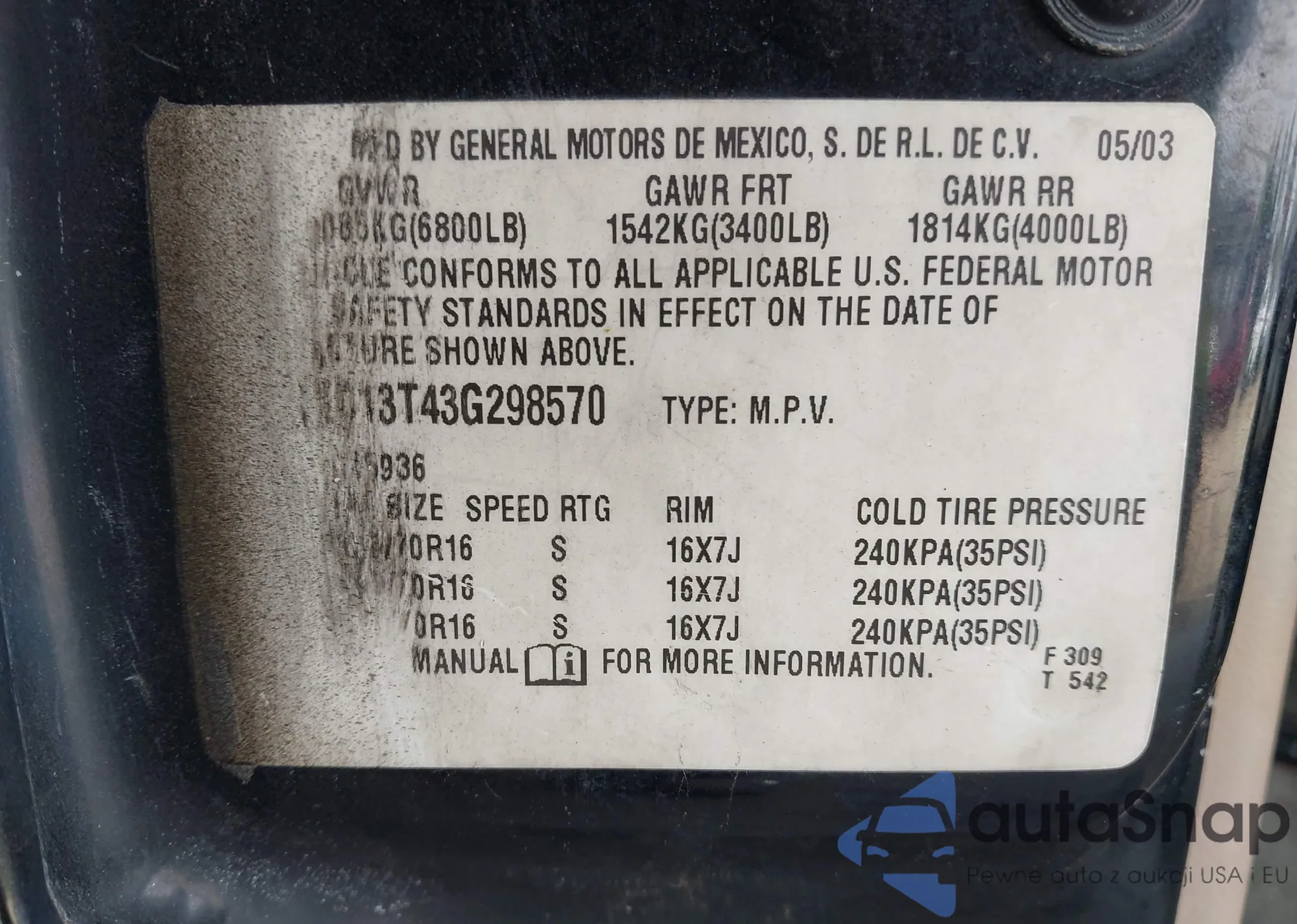 • VIN 3GNEC13T43G298570